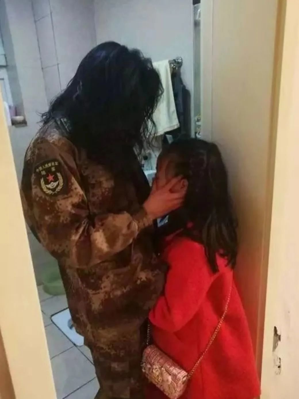 当兵的妈妈刚换好军装,就需离开。