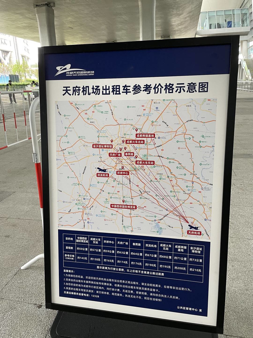 天府国际机场出租车价格参考示意图
