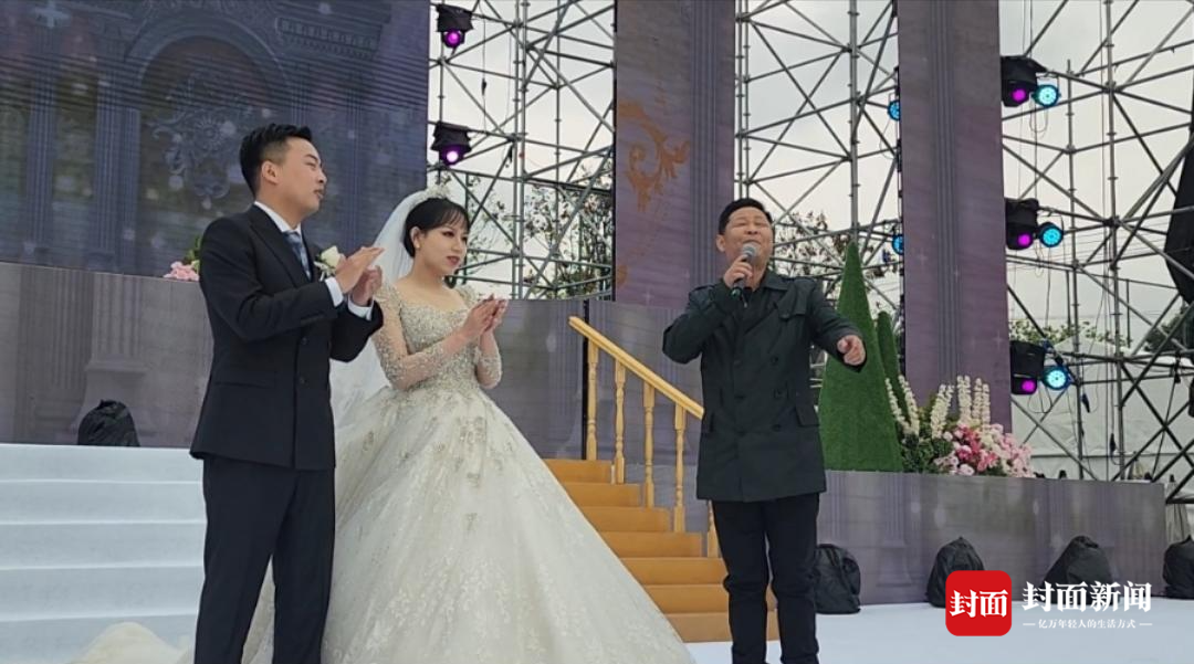 3月26日中午,成都武侯区一个婚礼现场热闹非凡。影视明星“三德子”赵亮现身金先生与潇月女士的婚礼上,为他们证婚。他还用电视剧《康熙微服私访记》中“三德子”的台词和腔调,风趣幽默地送上了祝福。
