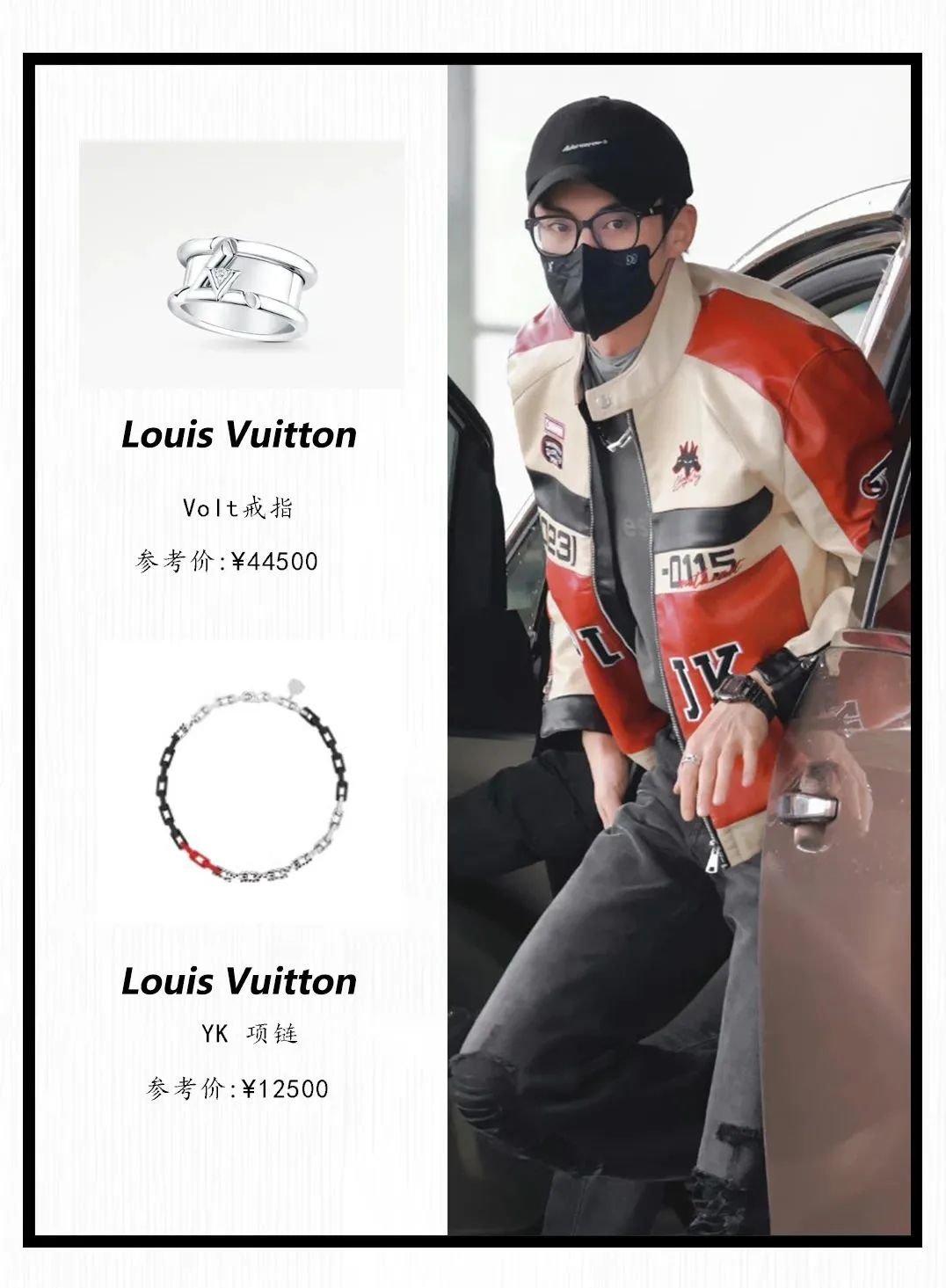 王鹤棣虽然衣服鞋子是小众品牌,但身上的配饰是价值五万元的Louis Vuitton的戒指,和一万多的同品牌项链。