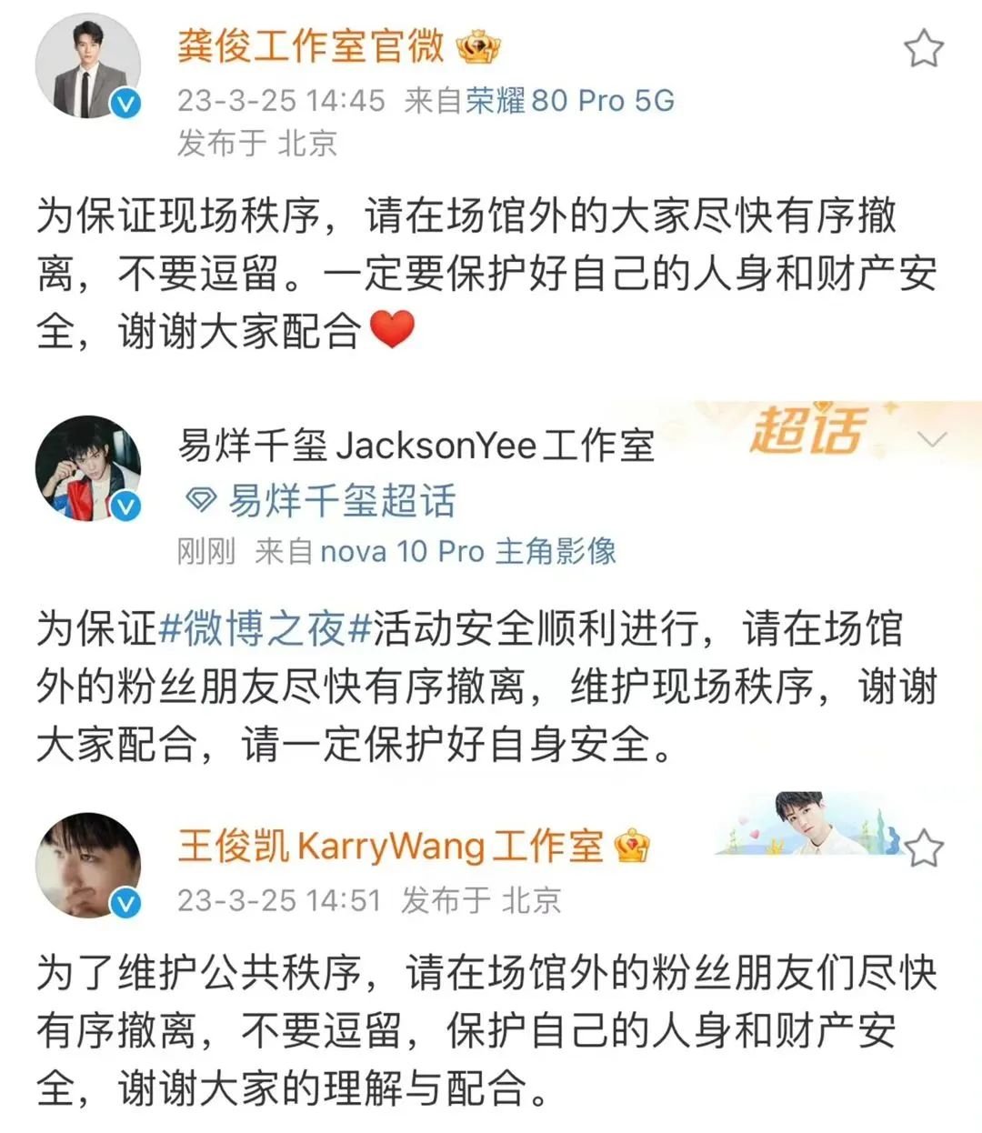 据说是因为现场粉丝人数过多触发的“管控”,各大工作室纷纷下场,突出一个重点:只要流量,不要粉丝。