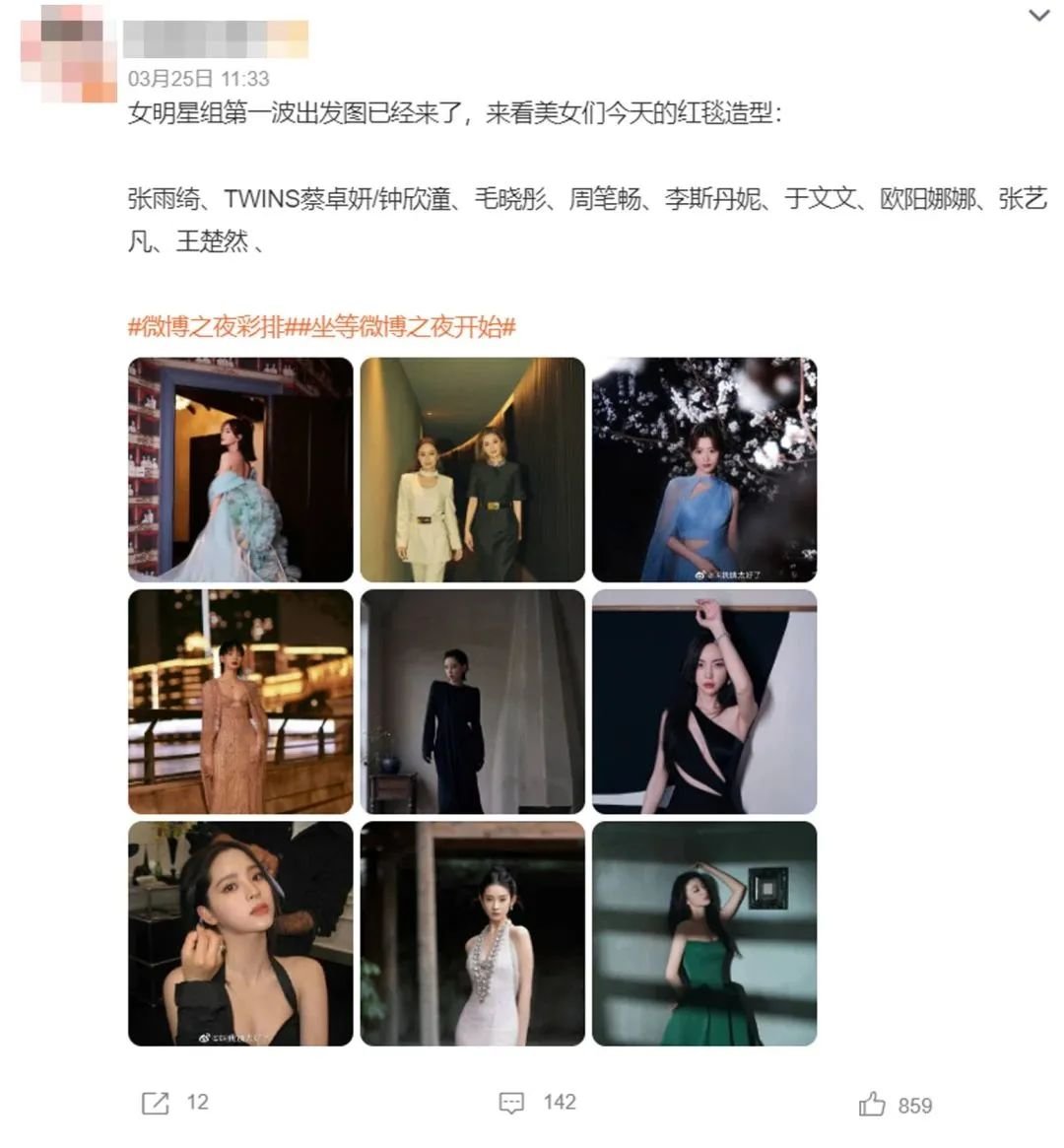 不知是否都预感到了红毯的取消,这次微博之夜整体造型比较偏保守,安全美丽但也没有让人特别惊艳的存在。