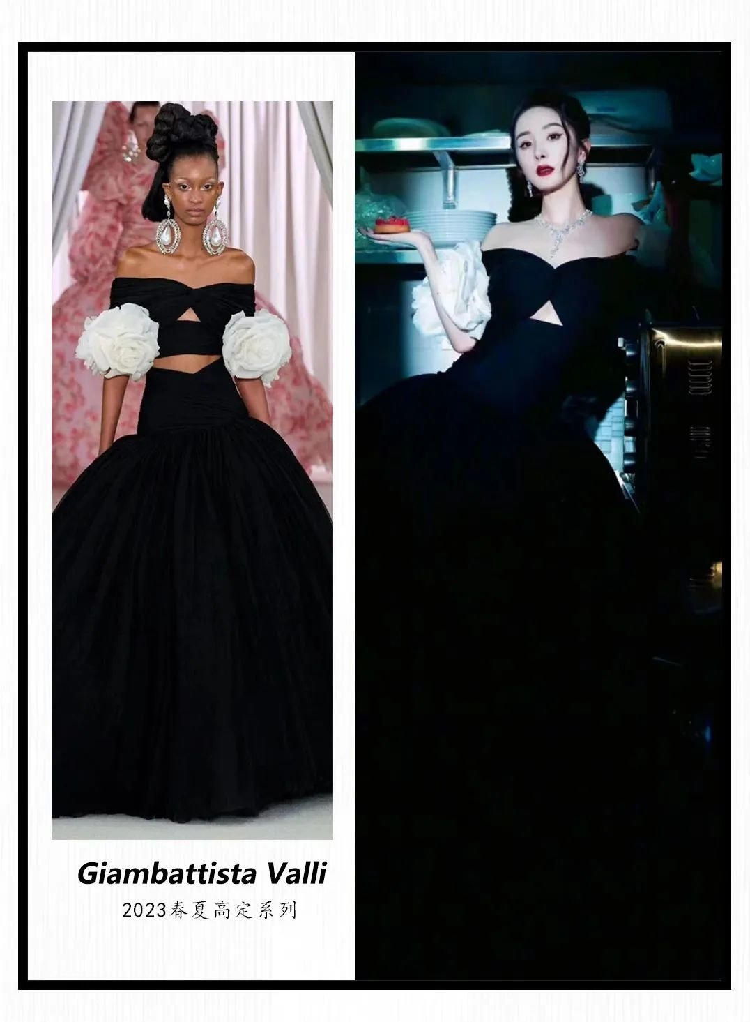 F更喜欢这一套Giambattista Valli的高定,像是黑天鹅般稳重优雅,而且杨幂没有选择如模特一样通过露肤的方式分割比例,而是只保留了胸部的镂空,不仅延续了性感元素,还拉高了腰线比例。