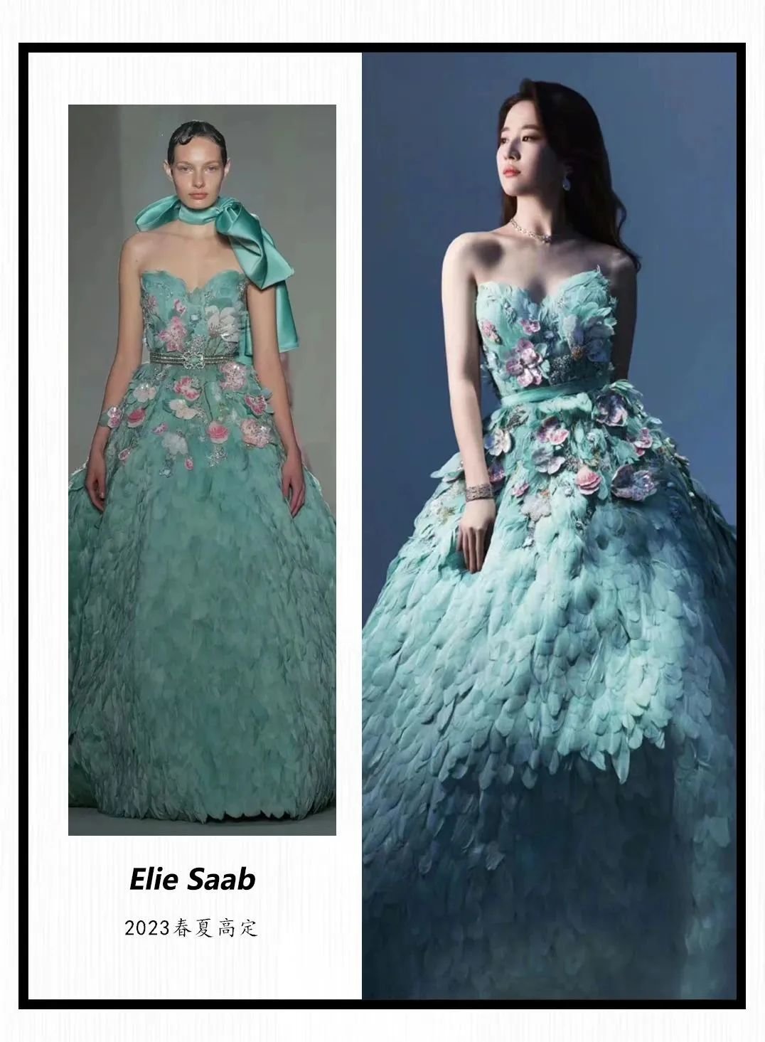 这一次选择的Elie Saab2023的高级定制羽毛裙非常适合她,去繁化简拿掉了腰链装饰和领巾,弱化了裙子的现代感和腰间的累赘感,与羽毛的轻盈特质结合带给人羽化成仙的感觉,很符合刘亦菲中式美人的古典仙气。