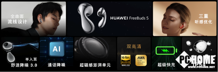 此外,华为FreeBuds 5耳机支持三麦克风混合降噪,拥有耳道自适应降噪,能根据用户耳形、耳机佩戴状态,适配更佳降噪方案。