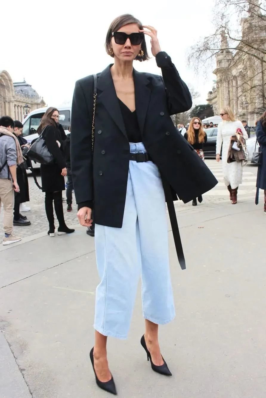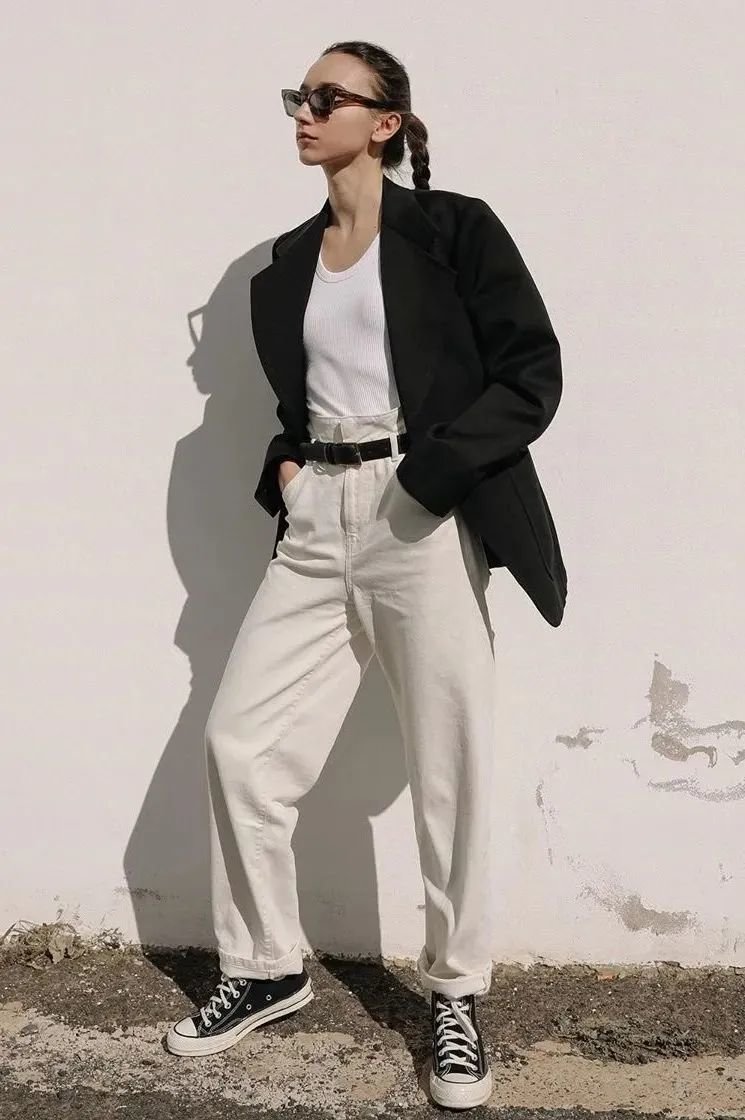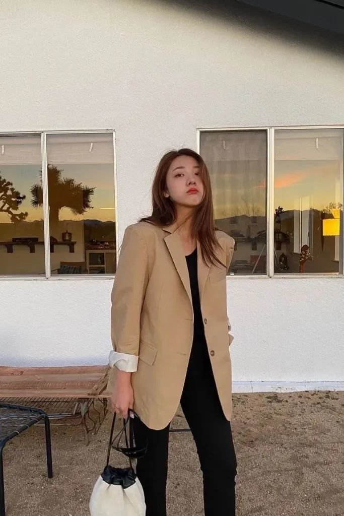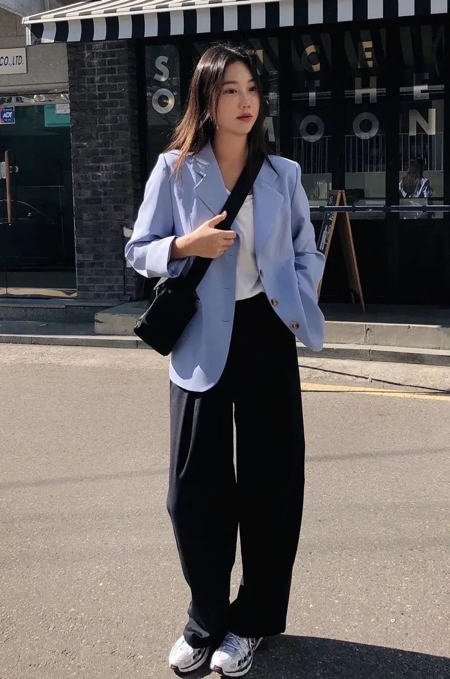 黑色西装是经典中经典,一件能穿很多年呢~黑西装、白T恤、牛仔裤三件套一起就是春日最合适的上班装。