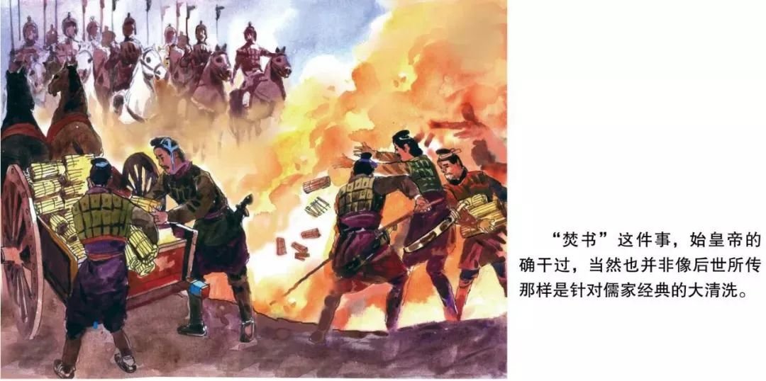 “焚书”这件事,始皇帝的确干过,当然也并非像后世所传那样对儒家经典的大清洗,而只是于始皇三十四年焚烧过一次百姓家中私藏的“百家书”。这次焚书对典籍造成的破坏也不是很严重,命令执行的并不彻底,不少读书人抱着典籍跑掉,或者藏在墙壁的夹层里。若非如此,汉朝以后两千多年的儒家文化难道是凭空而来的吗?
