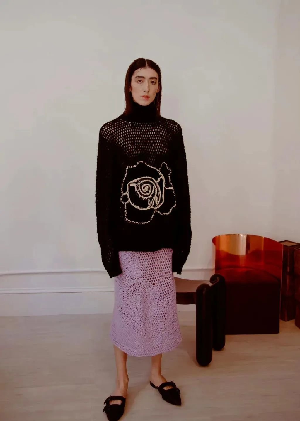 同时这个系列我们还将复古元素巧妙地融入到了这个系列中,如复古的钩针、宽松的大毛衣和阔腿裤以及羊毛皮革拼接材质的外套等,为这个系列注入了一份优雅和复古的味道。这些设计既复古又符合现代人的生活节奏。