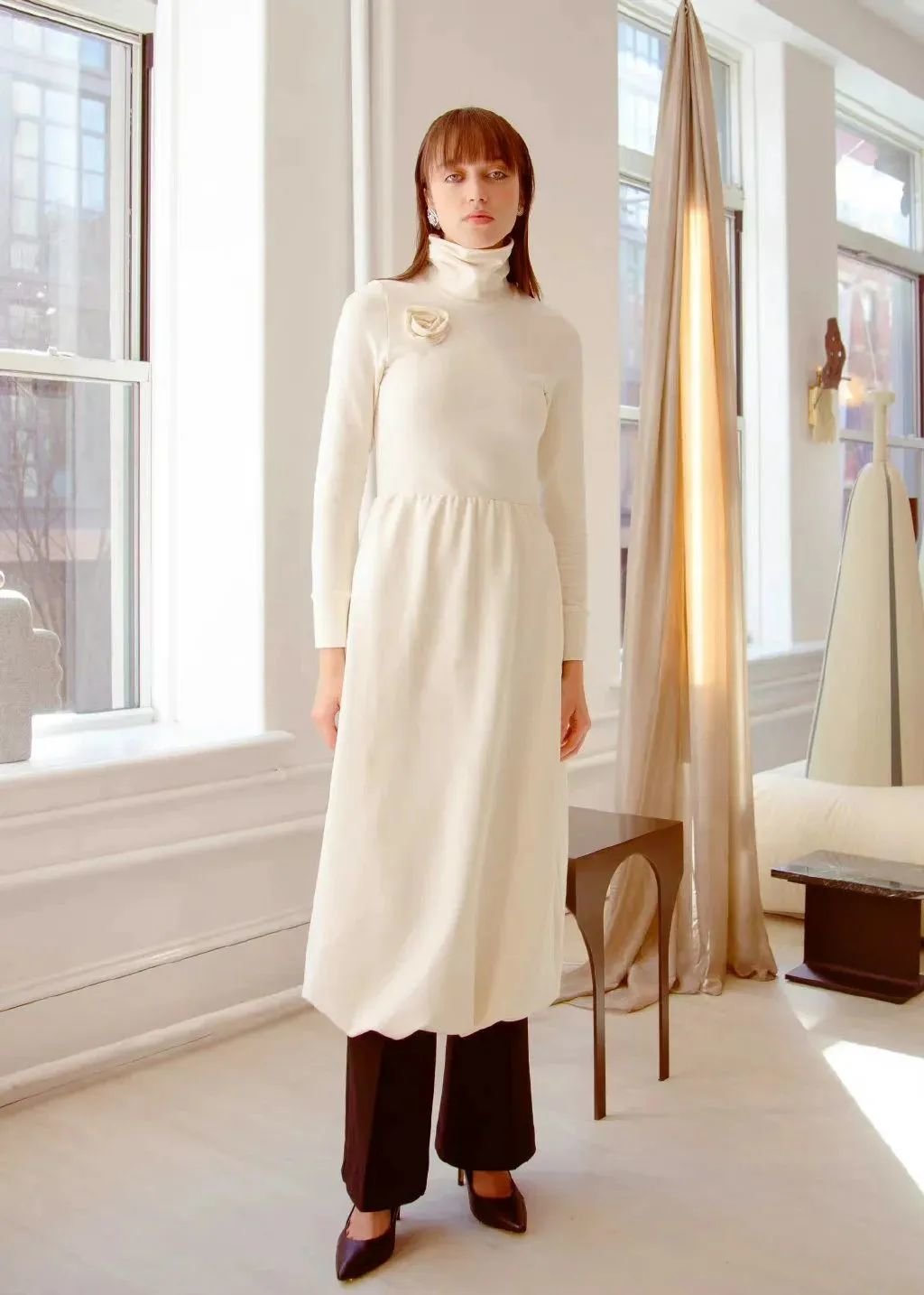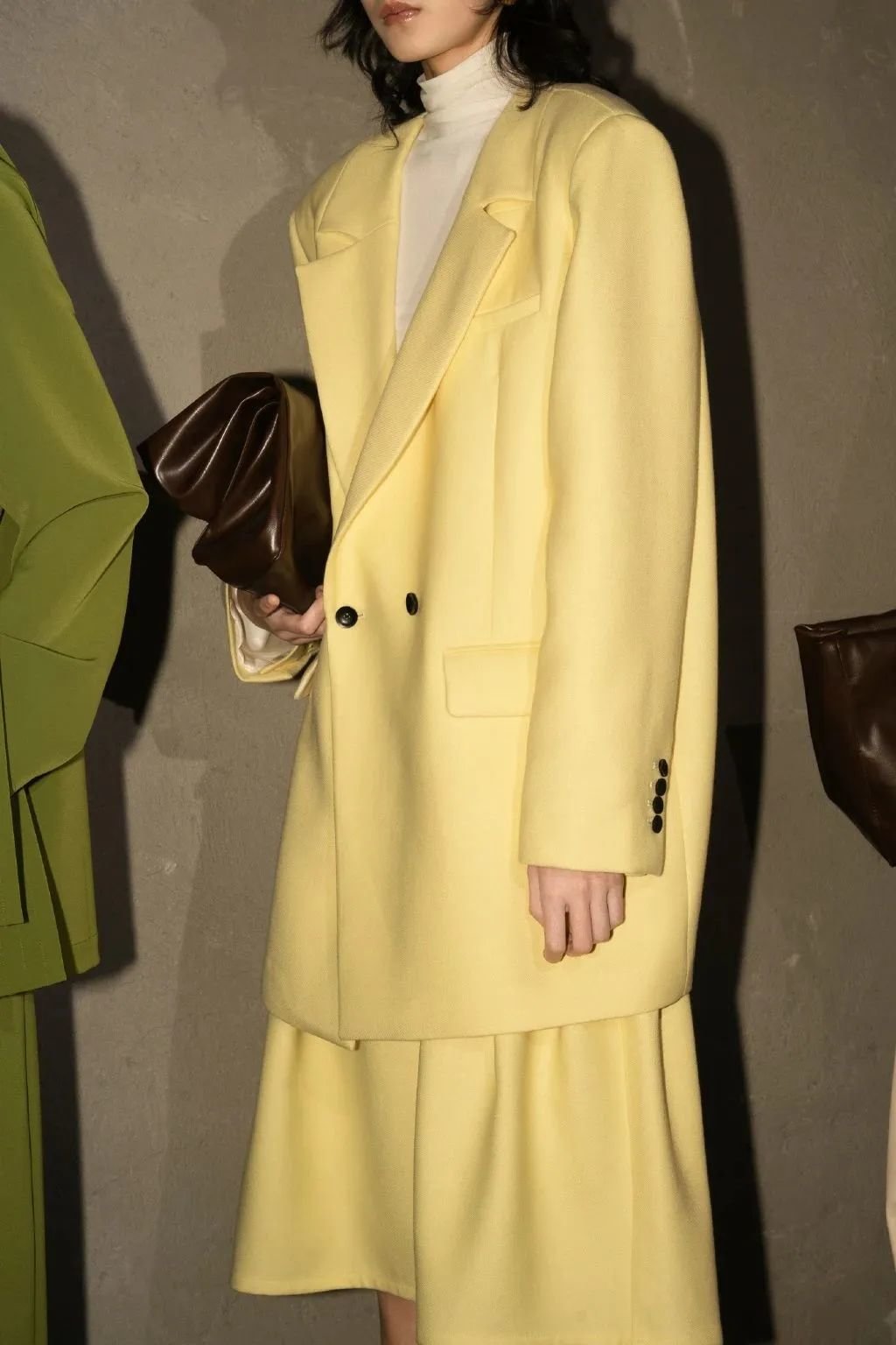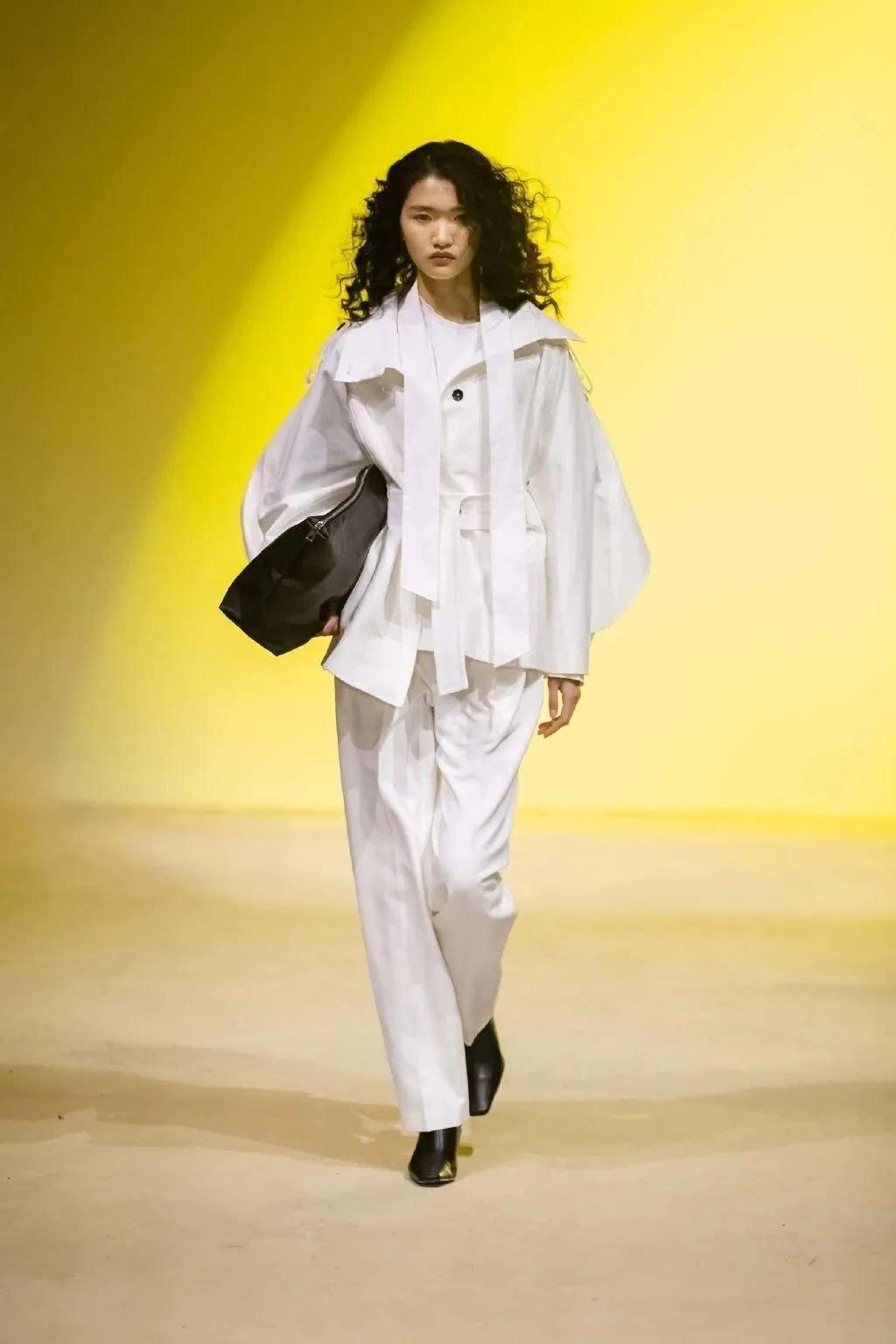 我们希望无负担地展示、成立、传播品牌信息。就比如这次秀场我们没有做额外的装置,但是我们比较有小心思,在门后面安装几个灯,用光线的变化来突出我们想要传达的女性内在力量的主题。