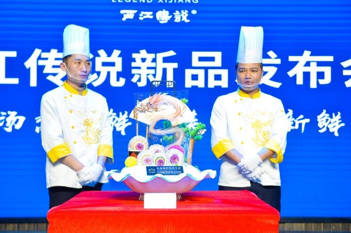 新品发布会在热烈期盼的掌声中隆重开始,主持人和西江传说传说的大厨们分别介绍了今天的八道新品菜:“阿拉斯加帝王蟹、深海大石斑、加拿大象拔蚌、南海东星斑、澳洲龙虾、海鲜大拼盘、传说战斗鸡、贵州土黄牛”。