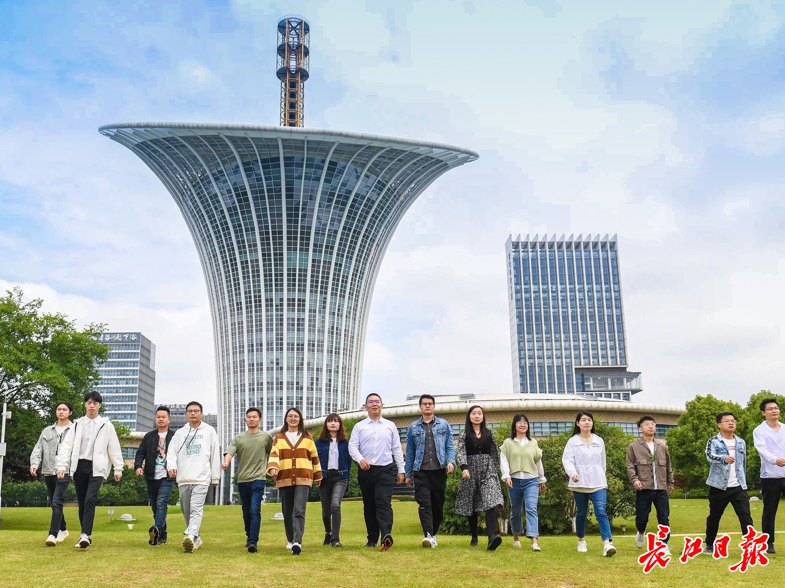 武汉光谷未来科技城一批青年科技工作者相聚在“马蹄莲”下,畅想未来。 长江日报记者 高勇 摄