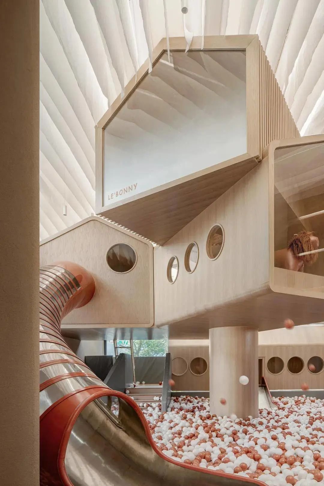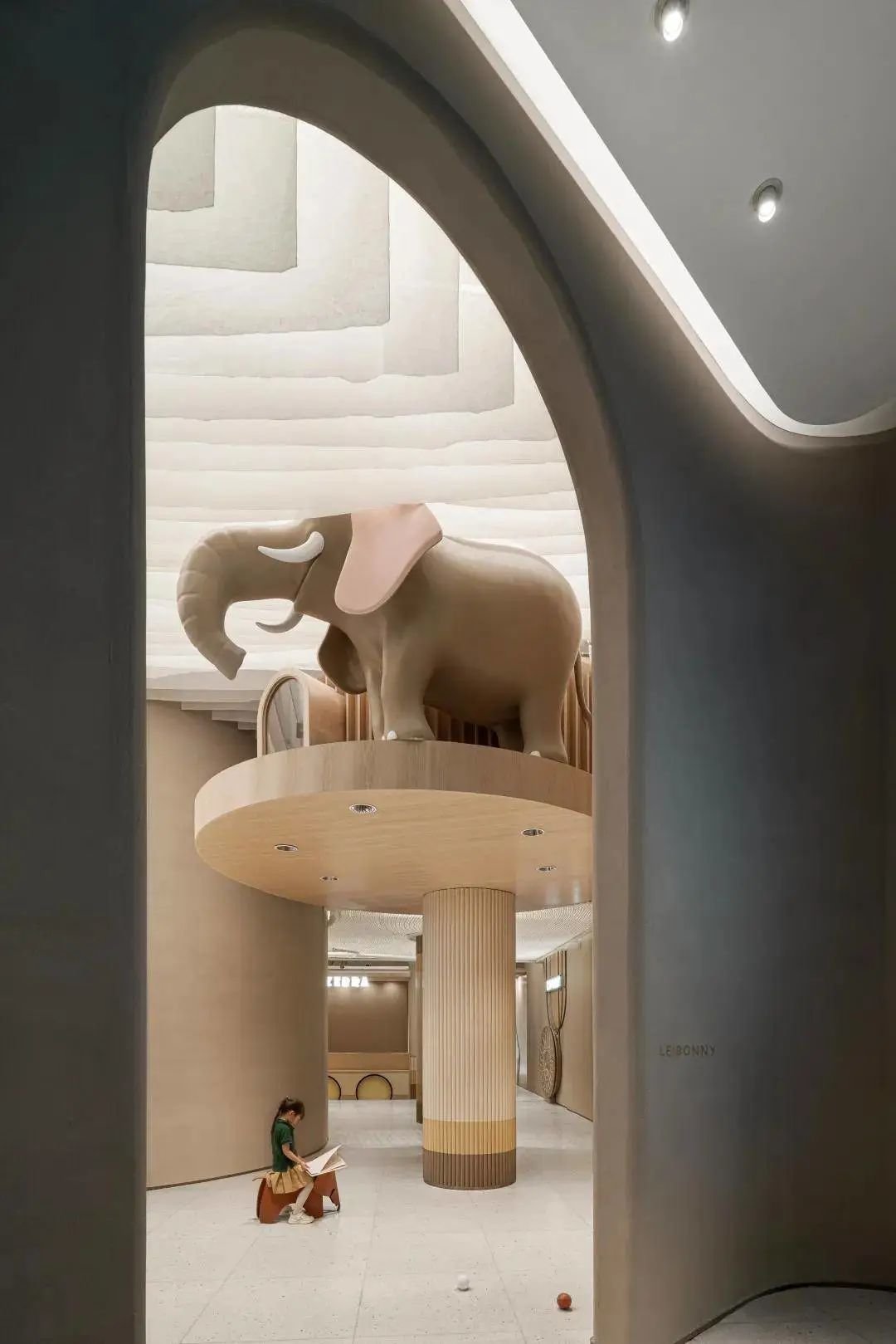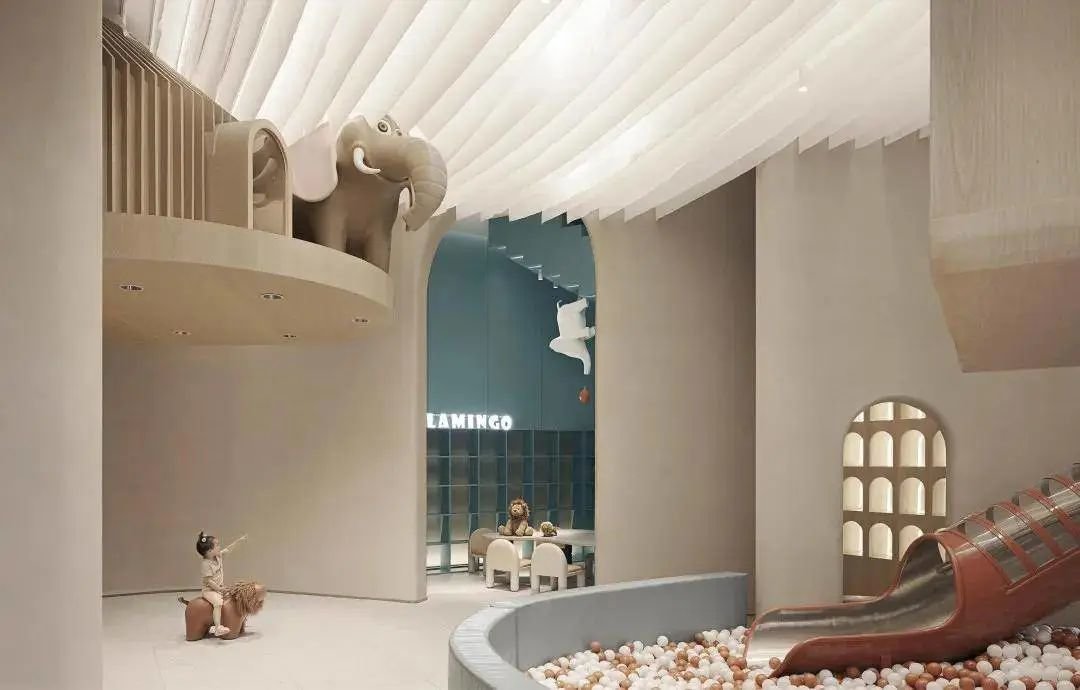 空间中考虑到各种不同形式儿童行为活动,希望在乐贝大堂空间内容纳更多的功能可能性,丰富活动乐园的使用性。