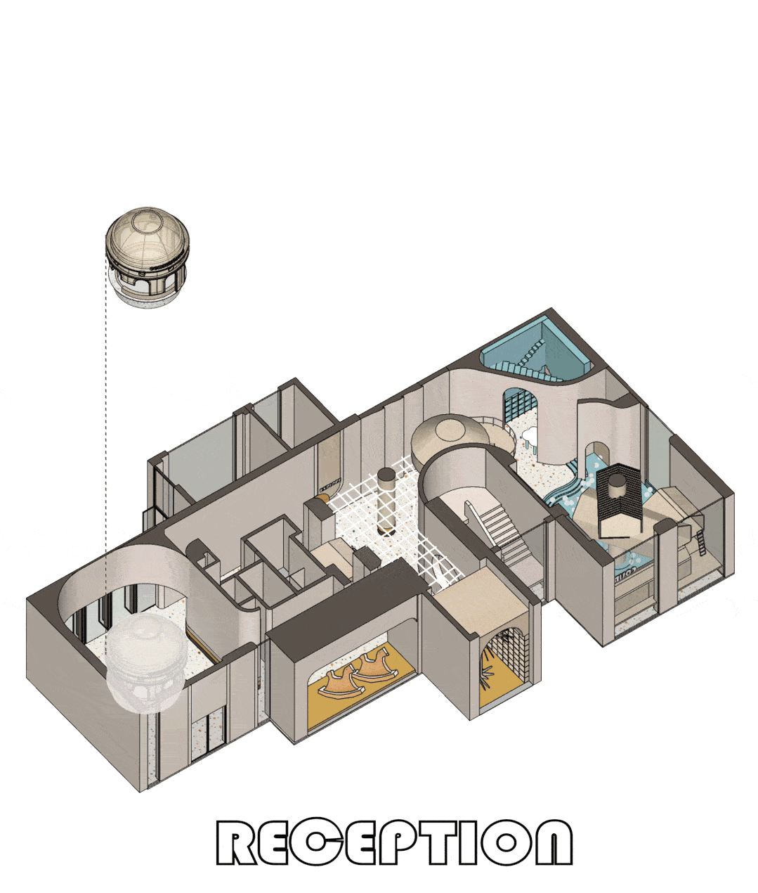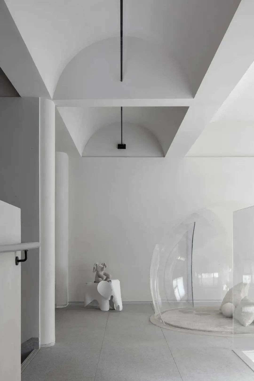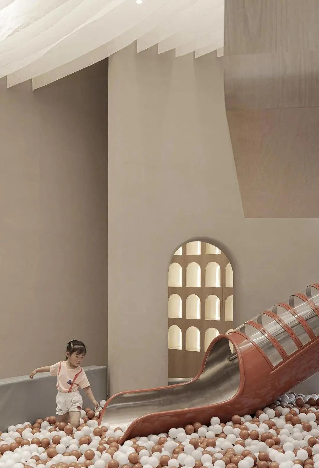 空间中考虑到各种不同形式儿童行为活动,希望在乐贝大堂空间内容纳更多的功能可能性,丰富活动乐园的使用性。