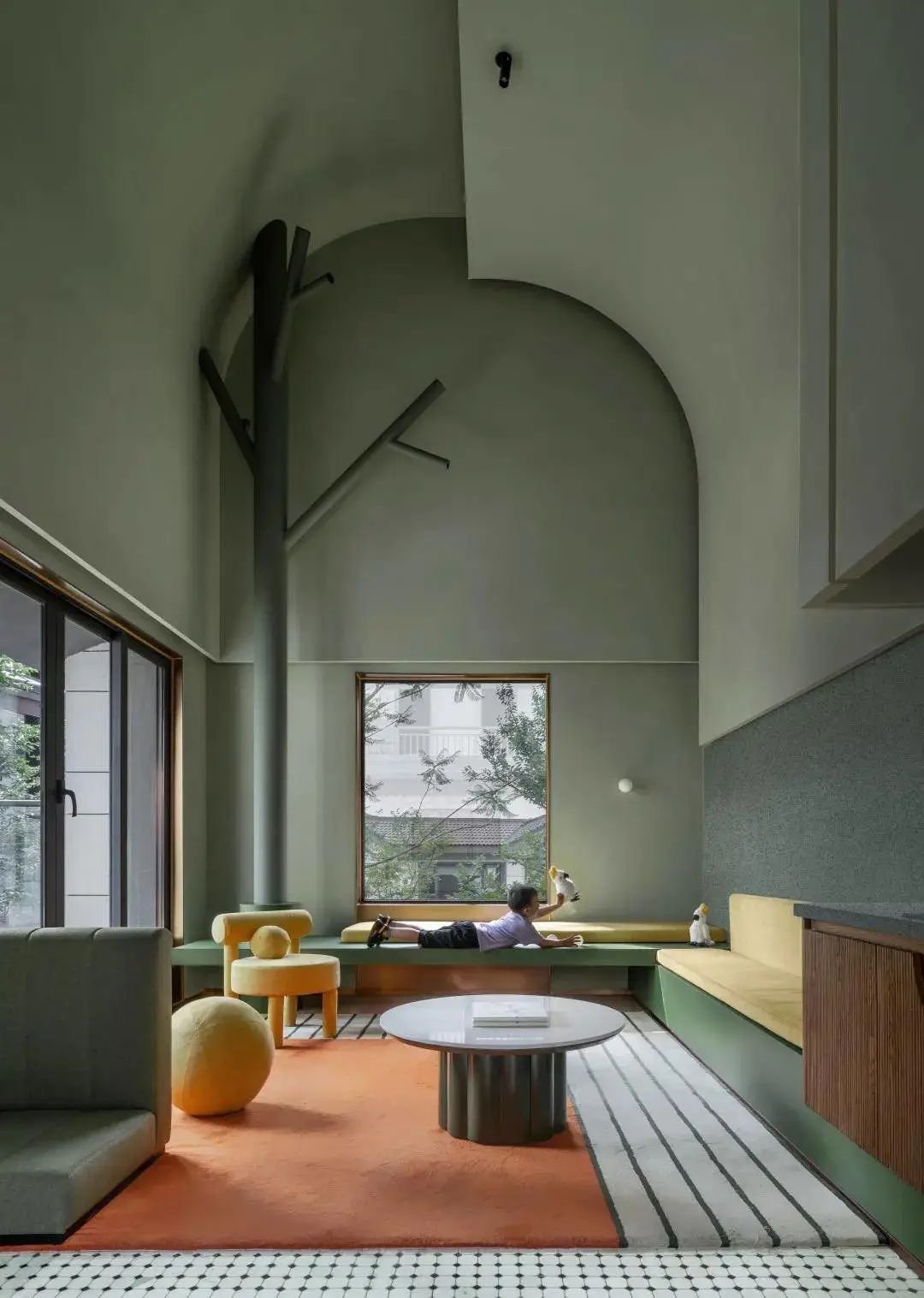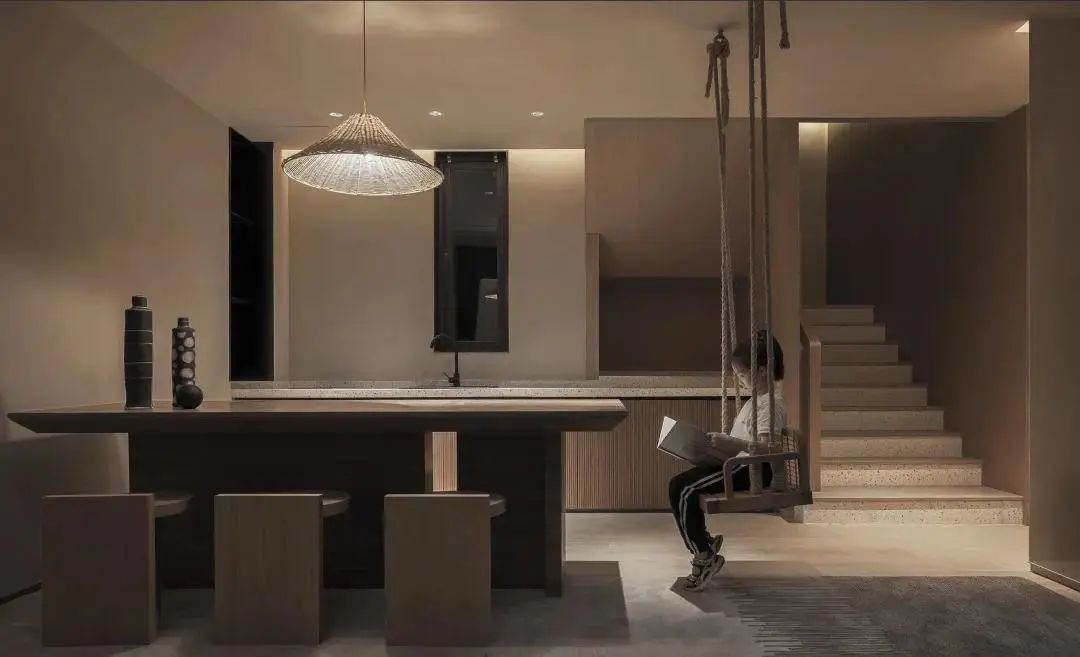 鹦鹉主题民宿特意设置了5米4的通高挑空,客厅整个做成了一个可以玩耍交流的小世界。