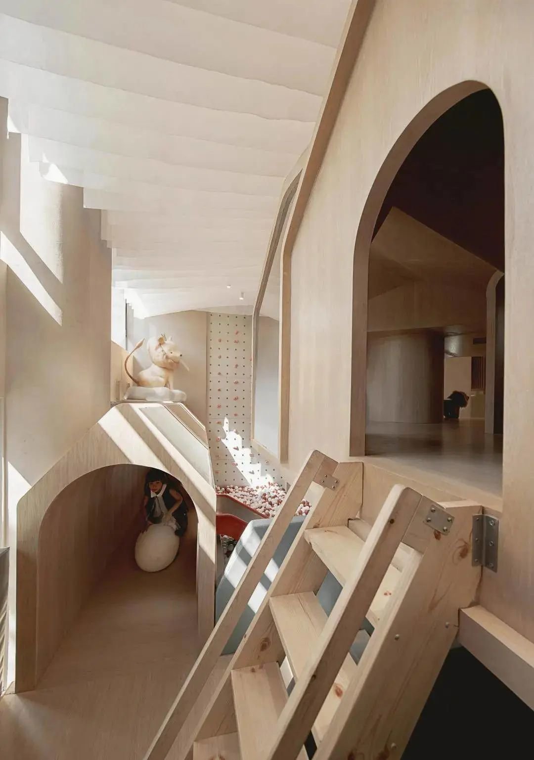 除了有意思的功能分区,生动的动物形象,空间中还有着各种各样不同的洞口,小朋友可以在不同的洞口发现不一样梦幻有趣的世界。