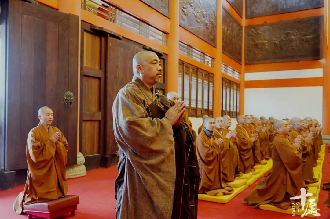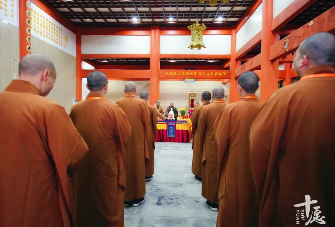 宣读启文后,新戒们向诸位引礼师父至诚顶礼,恭送知客师父回寮。