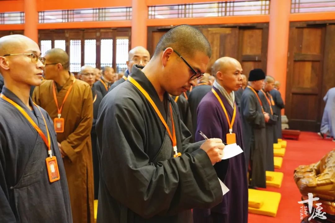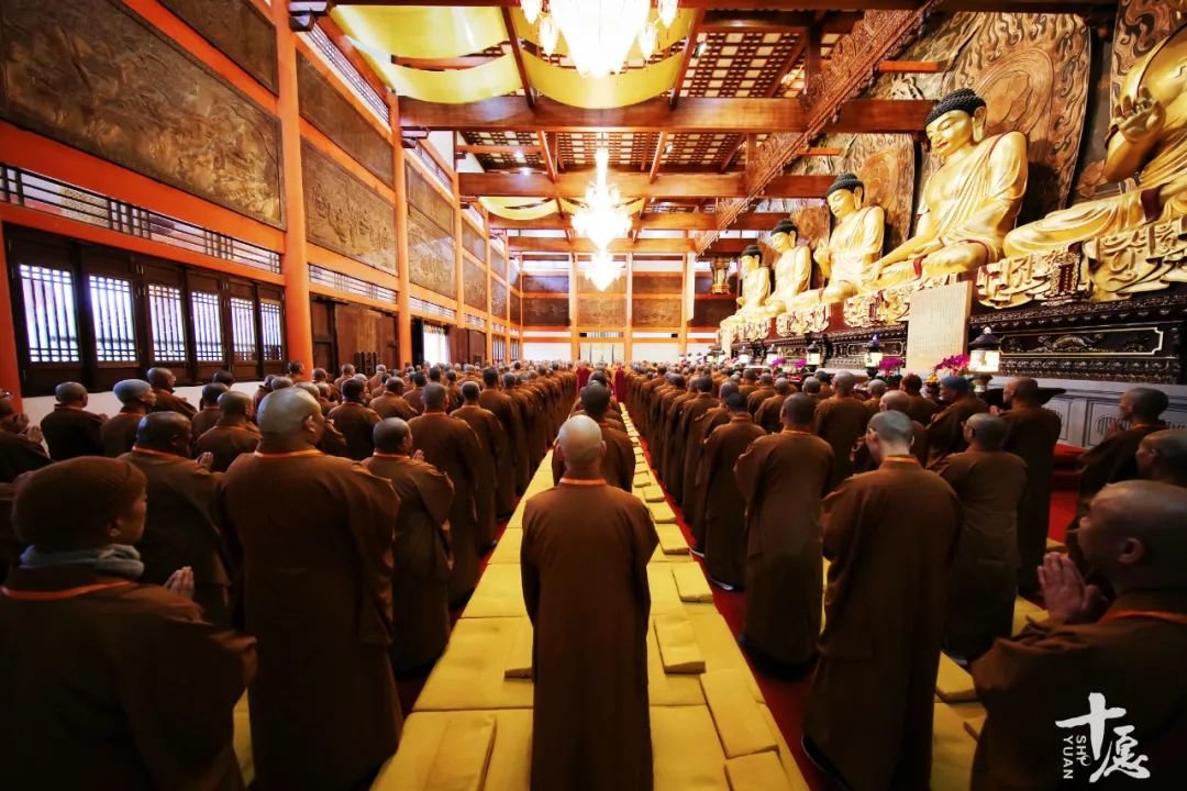 上午7点半,三百五十多位新戒穿戴整齐、仪表庄严,于雪峰崇圣禅寺大雄宝殿排班。