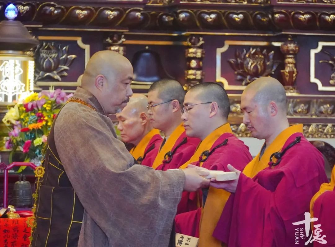 随后,传观法师为诸引礼师授香板,并向三百五十多位新戒作慈悲开示,传观法师勉励新戒们在诸位师父的带领下,放下身心,虔诚忏悔,克服困难,坚持到底,圆满得受三坛大戒。