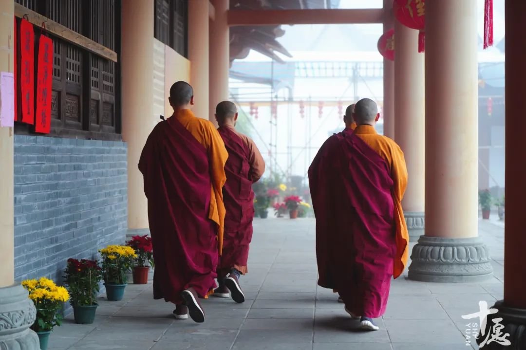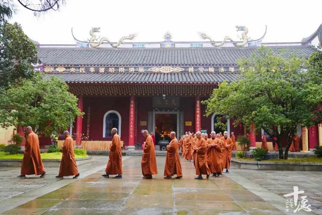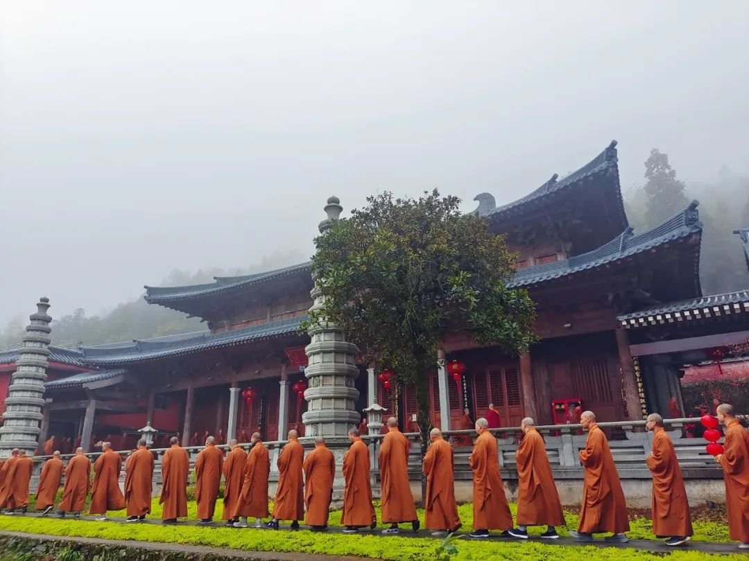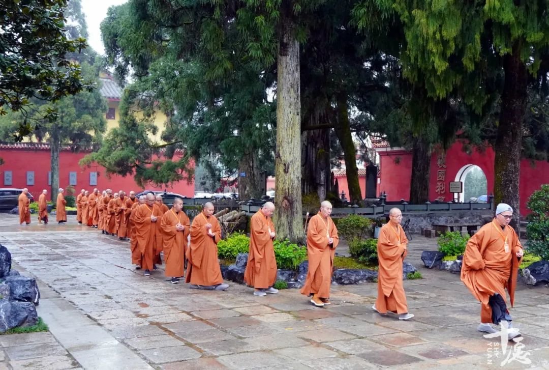 传观法师及诸引礼师父带领戒子绕寺洒净