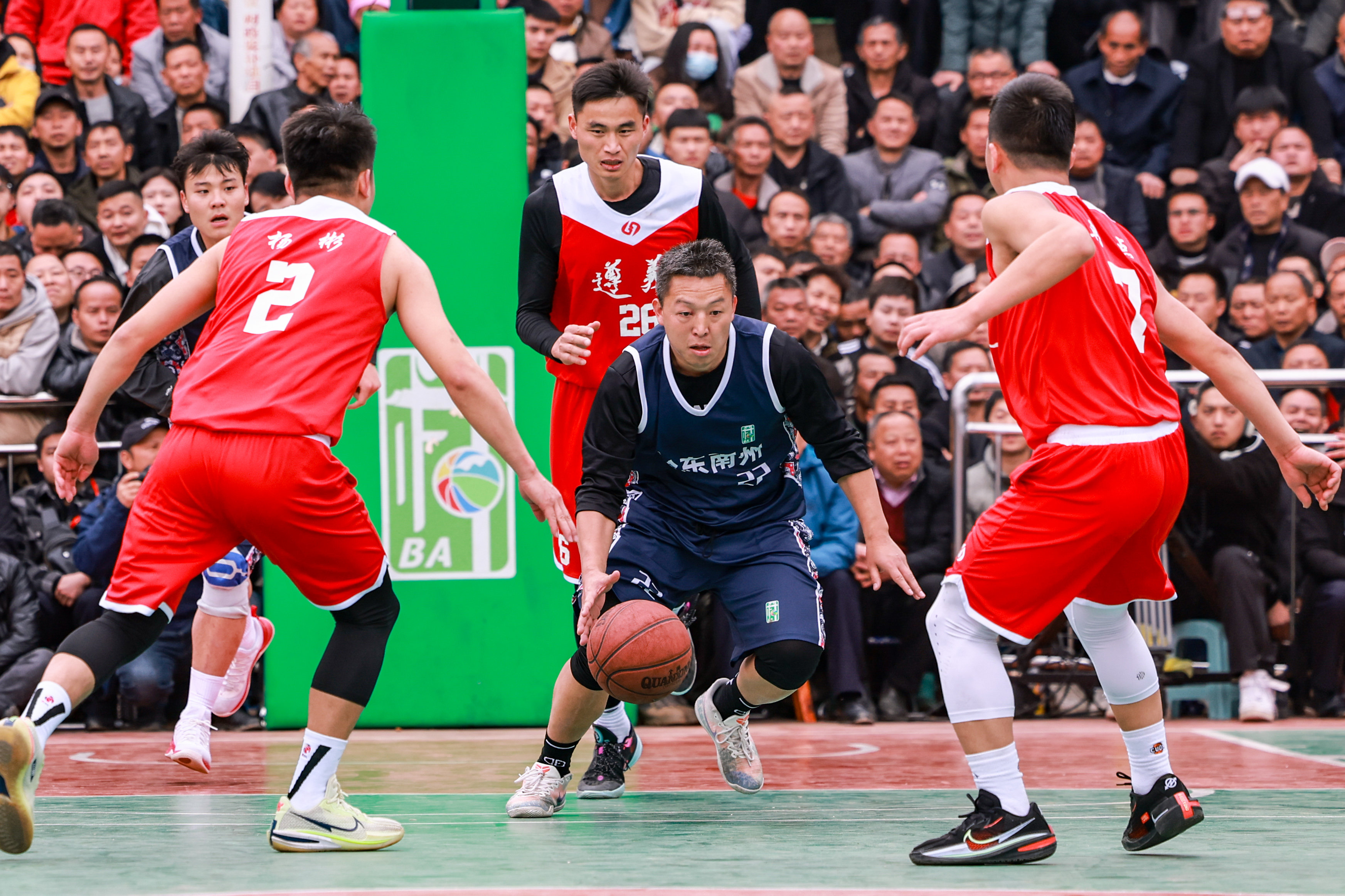 3月27日,黔东南州代表队球员欧明辉(右二)在比赛中进攻。新华社记者 欧东衢 摄