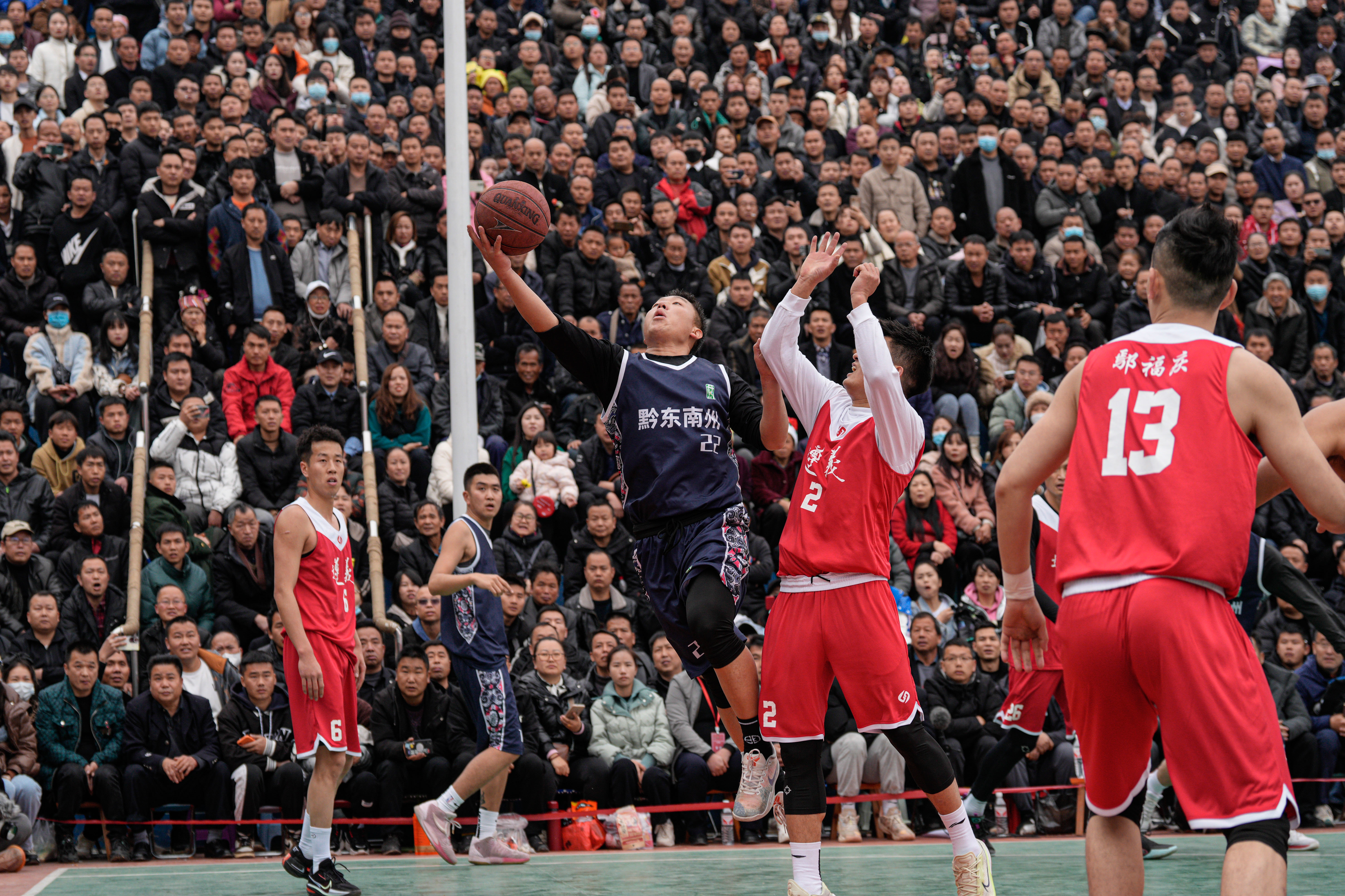 当日,贵州省首届“美丽乡村”篮球联赛总决赛在黔东南州台江县台盘村举行,黔东南州代表队以68比65的比分战胜遵义市代表队,获得冠军。这项由台盘村“六月六”吃新节篮球赛发展而来的赛事因为火热的现场氛围和“接地气”的办赛风格,在2022年“火爆全网”,被网友亲切地称为“村BA”。