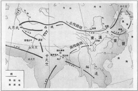 佛教传播路线图(图源:中国历史地理图册)