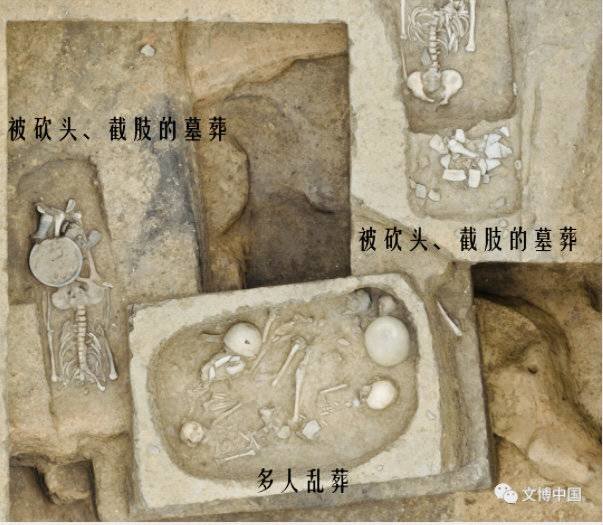 “井”字形道路划分的祭祀区以西网格中,发现贵族居住的夯土建筑和出有铜器、玉器的墓葬。附近还有多座墓主被截肢、砍头,但随葬有陶器的墓葬,还有一座多人乱葬合葬墓。这些新发现,再次证明二里头文化盛行“居葬合一”布局形态。