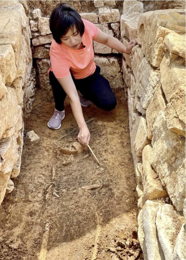 石室墓砌筑较随意,所用石料大而粗糙,顶部也由早期券顶变为用石板或条石横盖的平顶或叠涩顶,未发现排水沟。该段又可分为宋元和明两期。宋元时期墓葬93座,多分布在坟坝顶斜坡靠上位置。石室墓墓室较窄长,墓室砌筑相对规整,有用大石块砌筑的,亦有用小薄石块垒砌者,墓葬形制和所用石材一定程度体现了对早期墓葬的继承;土坑墓发现不多,仍是狭长形土圹。