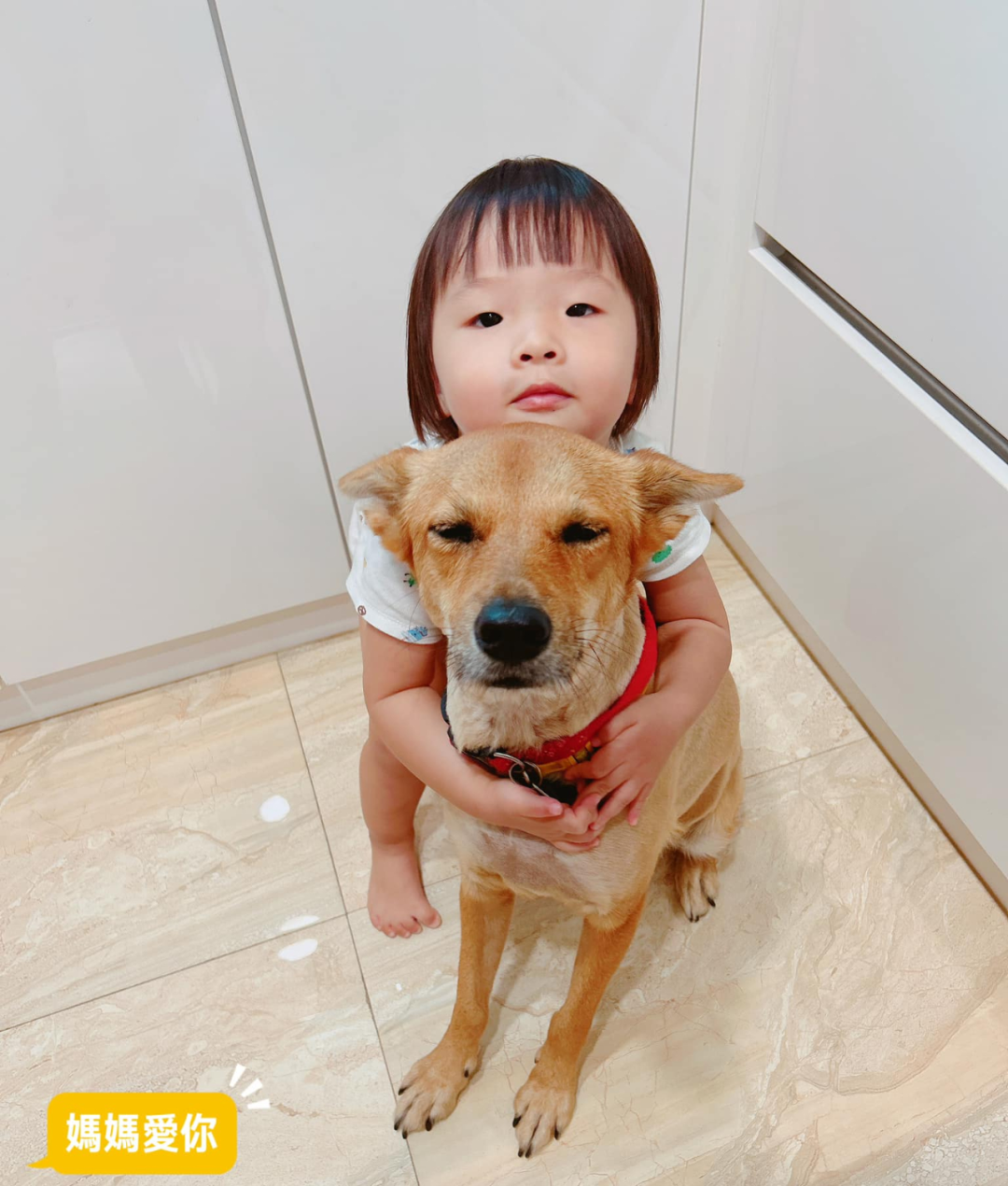 女儿对狗狗说:“你是不是很可怜,别人家的狗狗都不用照顾小孩,就你要照顾我们,你是不是比别的狗狗可怜。”