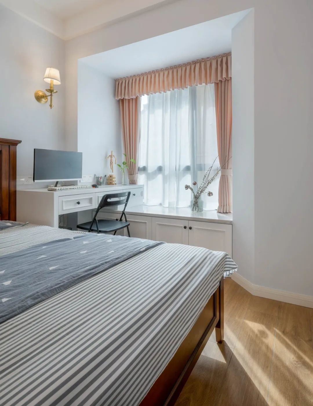 飘窗真是一个惬意而美好的角落,如今,在大部分的商品房里面,卧室与飘窗一同出现是非常常见的。