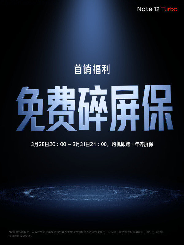 值得一提的是,在3月28日20:00-3月31日24:00首销期间,购买Redmi Note 12 Turbo的用户将获得一年碎屏保。