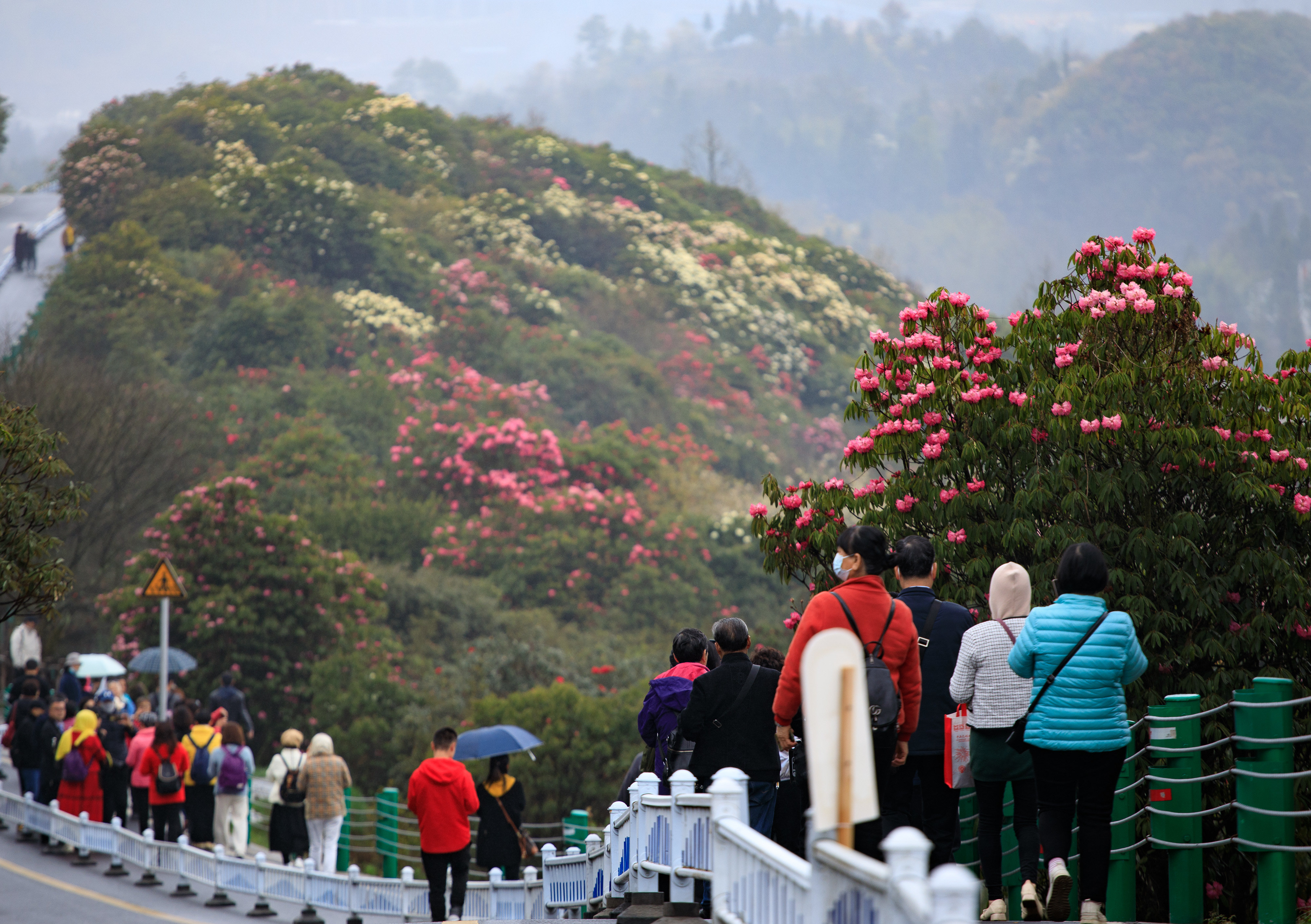 3月28日,百里杜鹃景区醉九牛景点附近杜鹃花盛开。新华社记者 刘续 摄