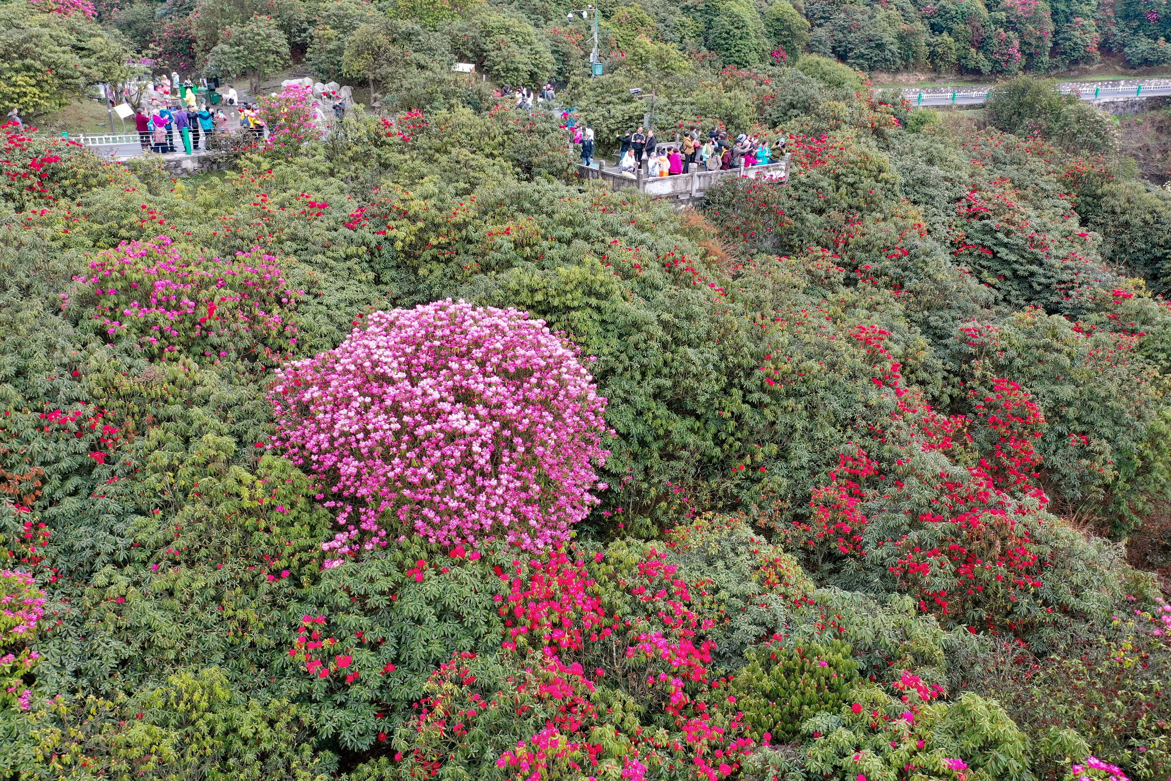 近日,随着气温逐渐升高,位于贵州省毕节市百里杜鹃管理区的天然野生杜鹃花次第盛开,逐渐进入盛花期。据了解,百里杜鹃林带绵延百里,故称“百里杜鹃”。