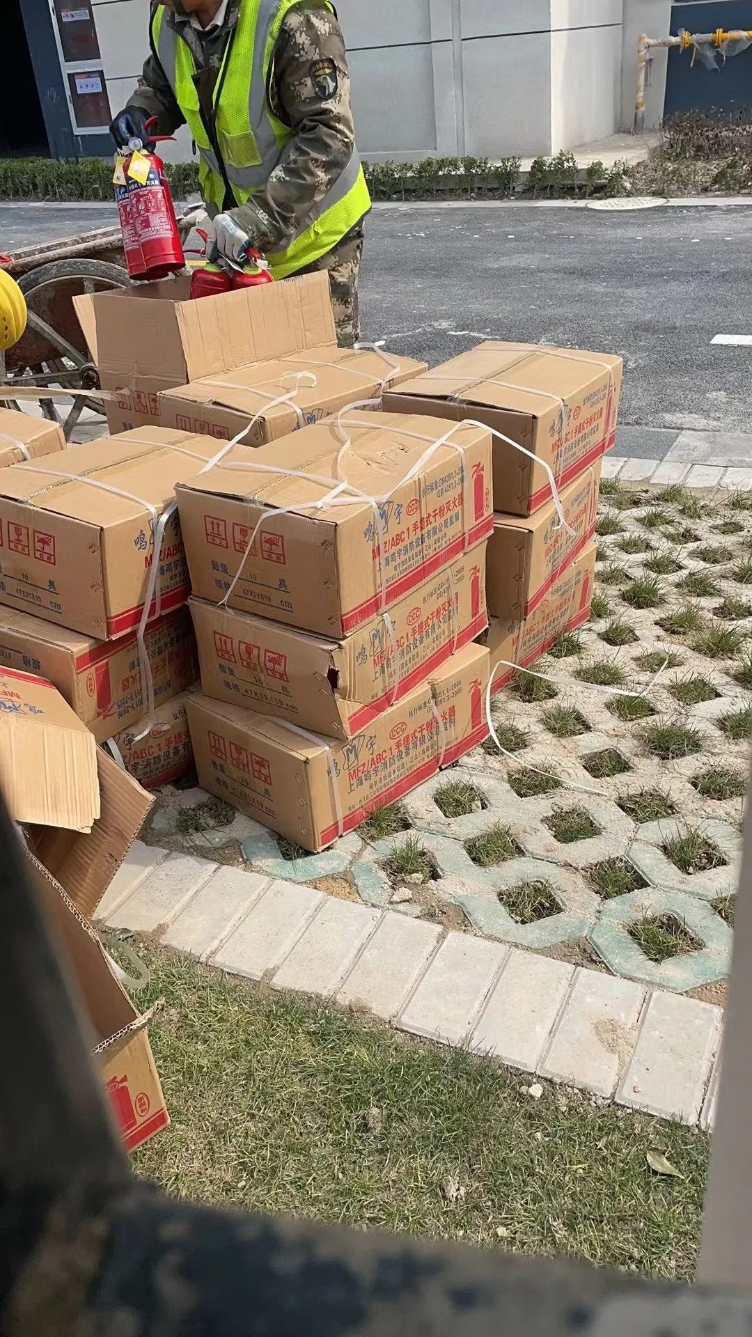业主爆料称,目前小区公区的绿化、墙面、公共设施等多处未完成,儿童游乐场堆满水泥沙袋、灭火器尚未分发到楼,许多工人还在紧急施工中。