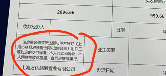 (万达钻石湾收房表,业主供图)