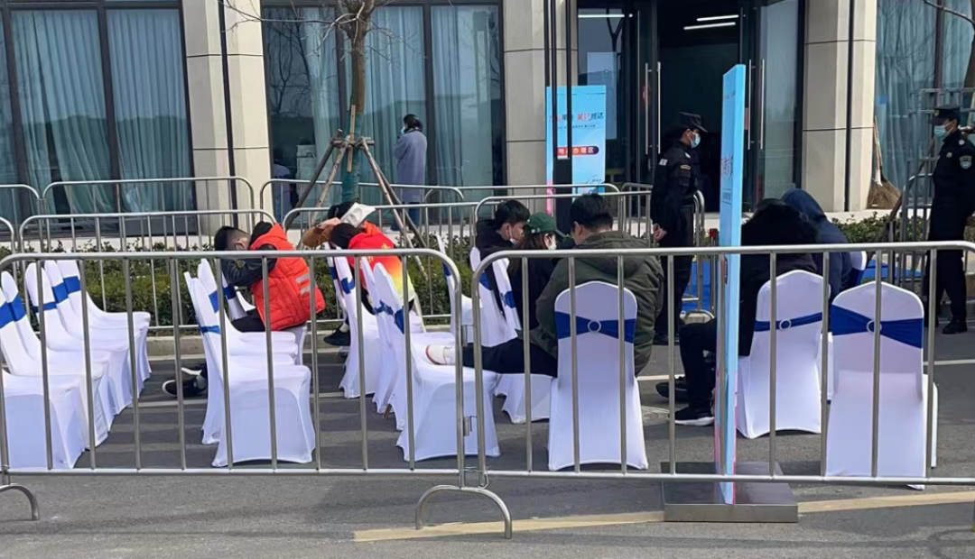 昨日(3月27日)是万达钻石湾第二个交房日,业主提供的图片显示,交付现场人气冷清,还有少量工作人员坐在椅子上打瞌睡。