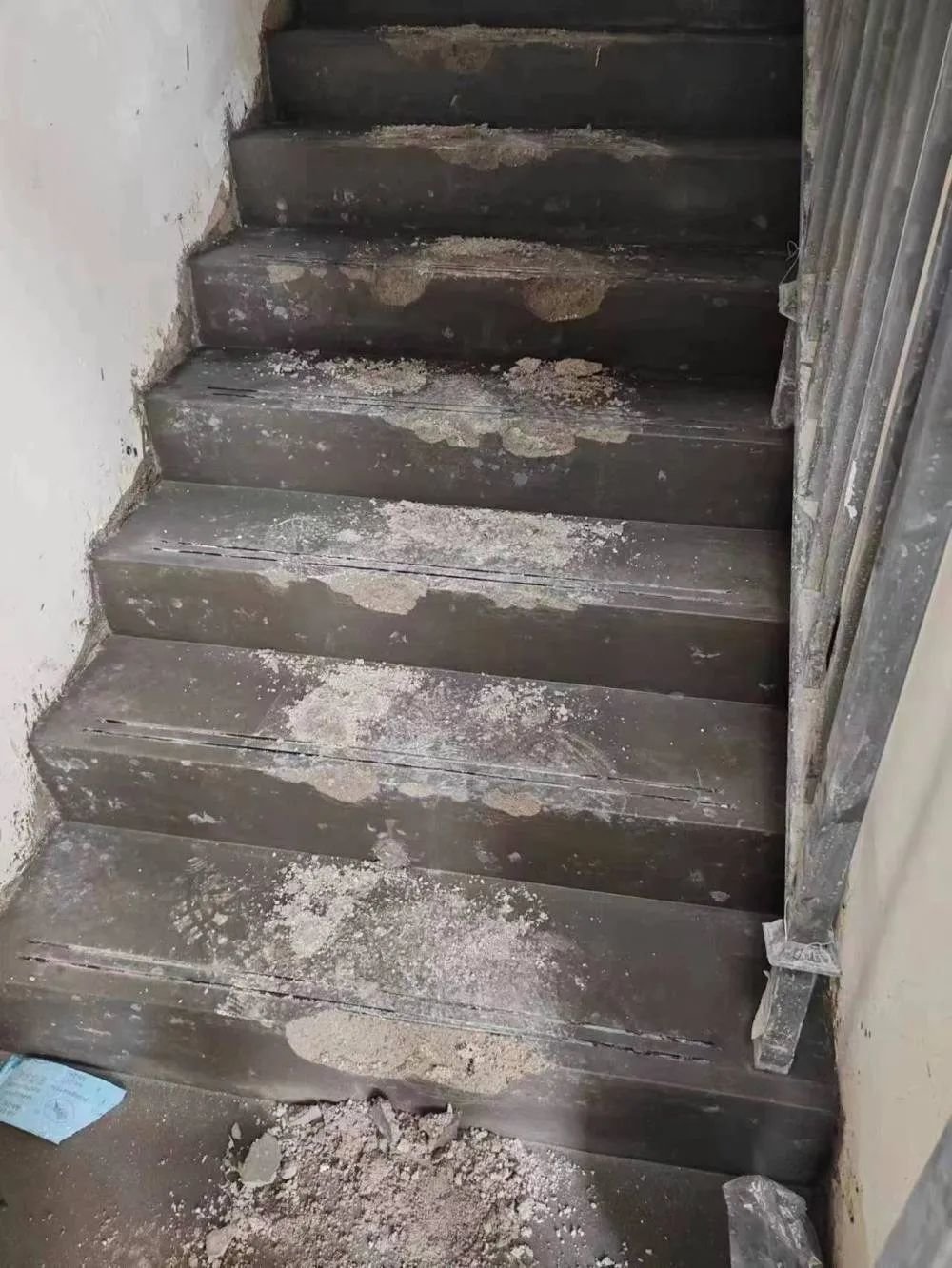 之前“预看房”中,业主们也发现了不少问题,比如水泥楼梯一碰就掉渣、室内墙面多处破损掉皮、外立面鼓包、门框不正等等,甚至在主入口处,万达的“达”字有一半脱离墙面,被电线悬在半空中。
