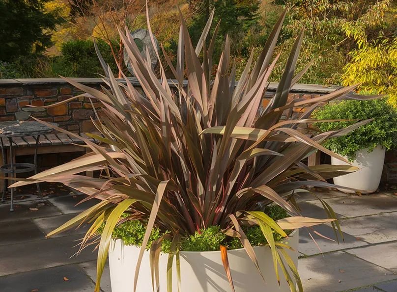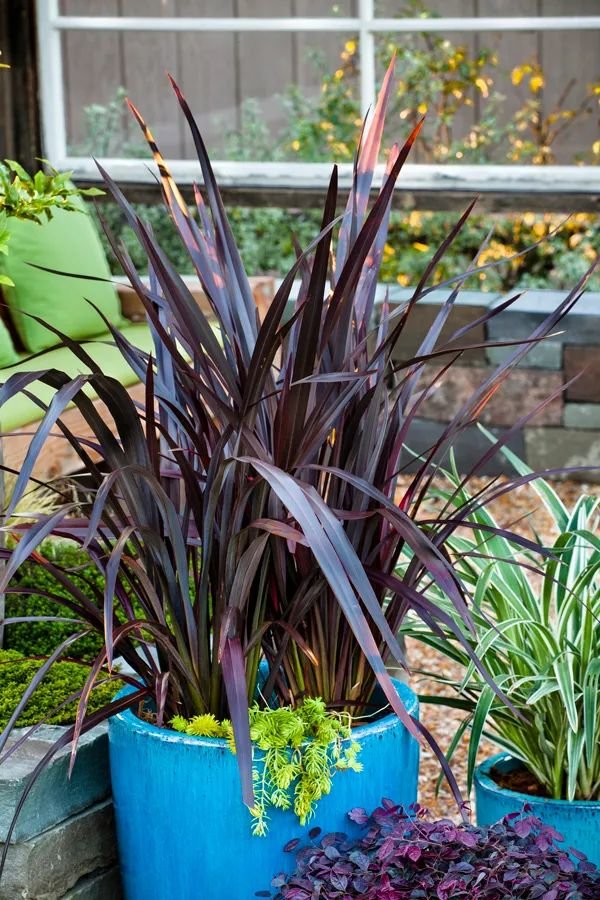 新西兰亚麻是比较独特的一种观赏草,它的叶子是会变色的,相比于其他的观赏草,它的叶子就特别宽,植株可以长到一米高。