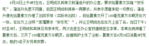 他找到主治医生蒲连升,要求安乐死结束母亲的生命。