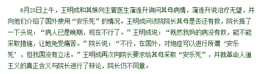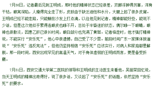 除了王明成自己,始终相信安乐死。
