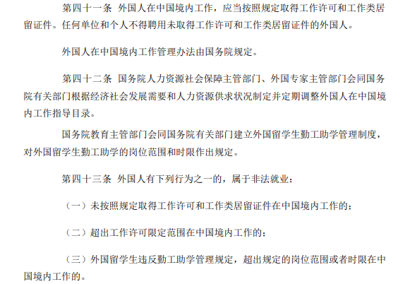 就行家所知,《中华人民共和国出境入境管理法》规定,外国人(即不具有中国国籍的人士)在境内就业,必须由用人单位申请工作许可和工作类居留证件;用人单位还需向有关部门报告。