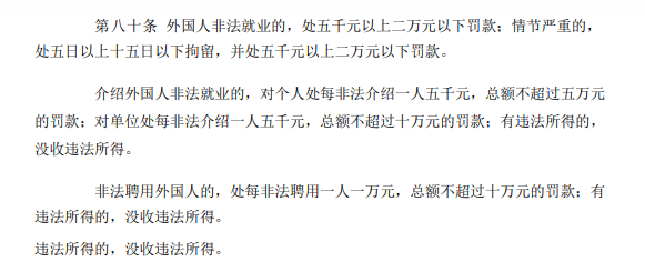 对非法雇佣外国人的单位及个人,《中华人民共和国出境入境管理法》也有规定: