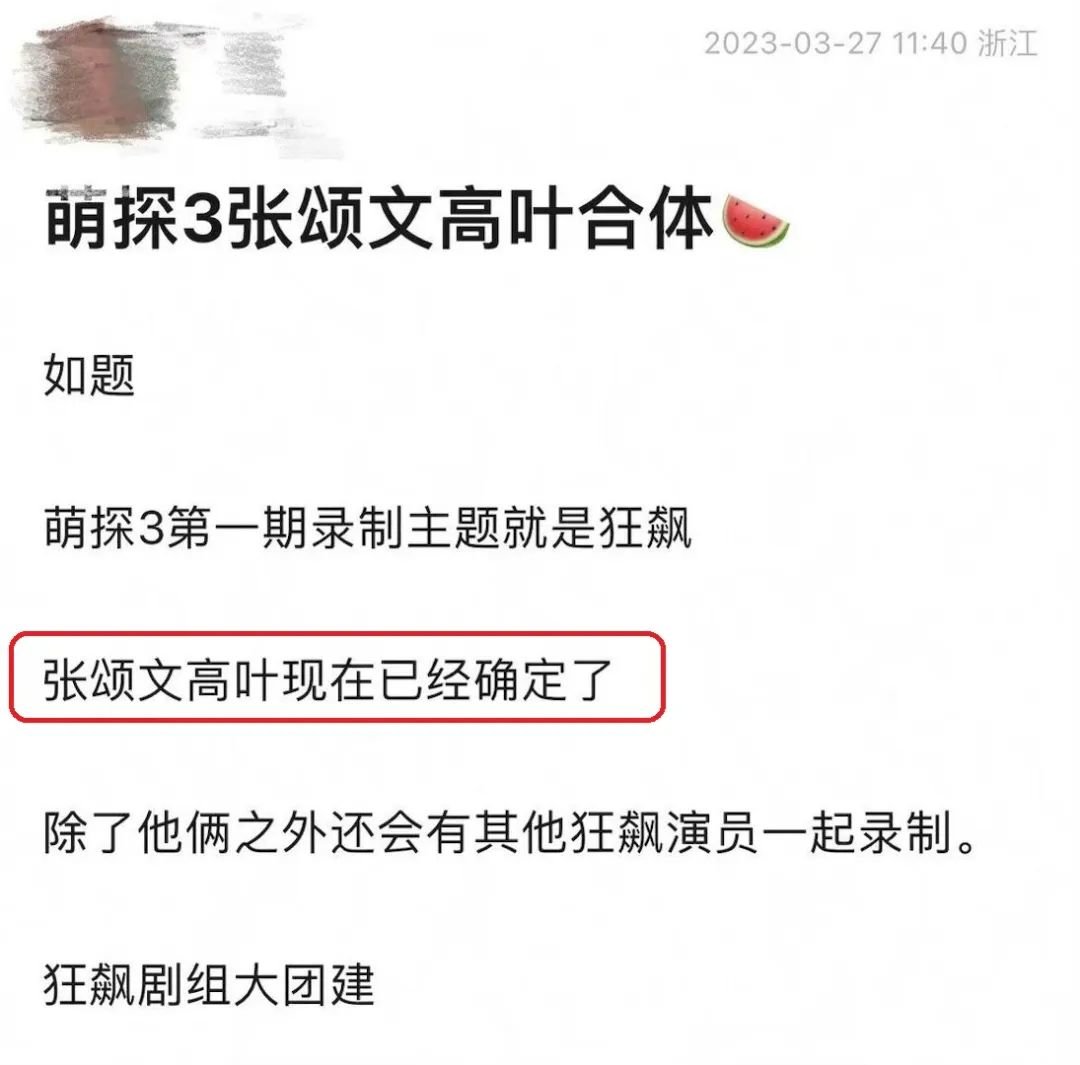 几天前,就有网友发帖称《萌探3》的第一期主题是《狂飙》,还透露“高启强夫妇”张颂文和高叶会合体。