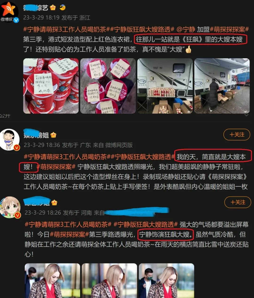 但其实张颂文和高叶都没有参加《萌探3》的录制。《狂飙》主题怎么能没有“大嫂”呢?从路透照来看,cos大嫂的是宁静,她身着大嫂一样的标志性红衣,不过头发还是她最喜欢的金色。
