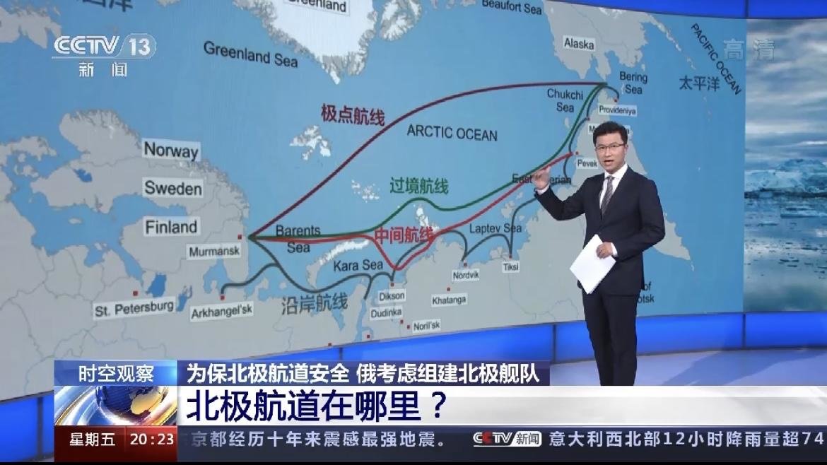 ↑北极航道主要有四条航线,据央视新闻2021年10月9日报道