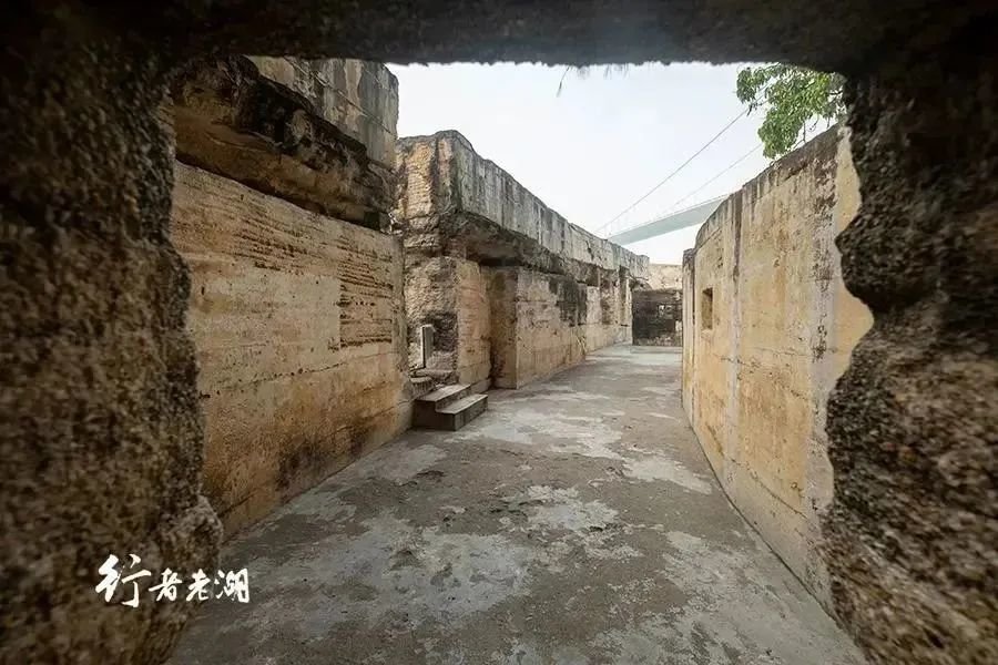 走进太平水道另一边的沙角炮台,道路右边墙壁上有许多的枪眼,外面包裹着后期修复的水泥,断面处可以看到当年建造的沙石,这是炮台的一部分。