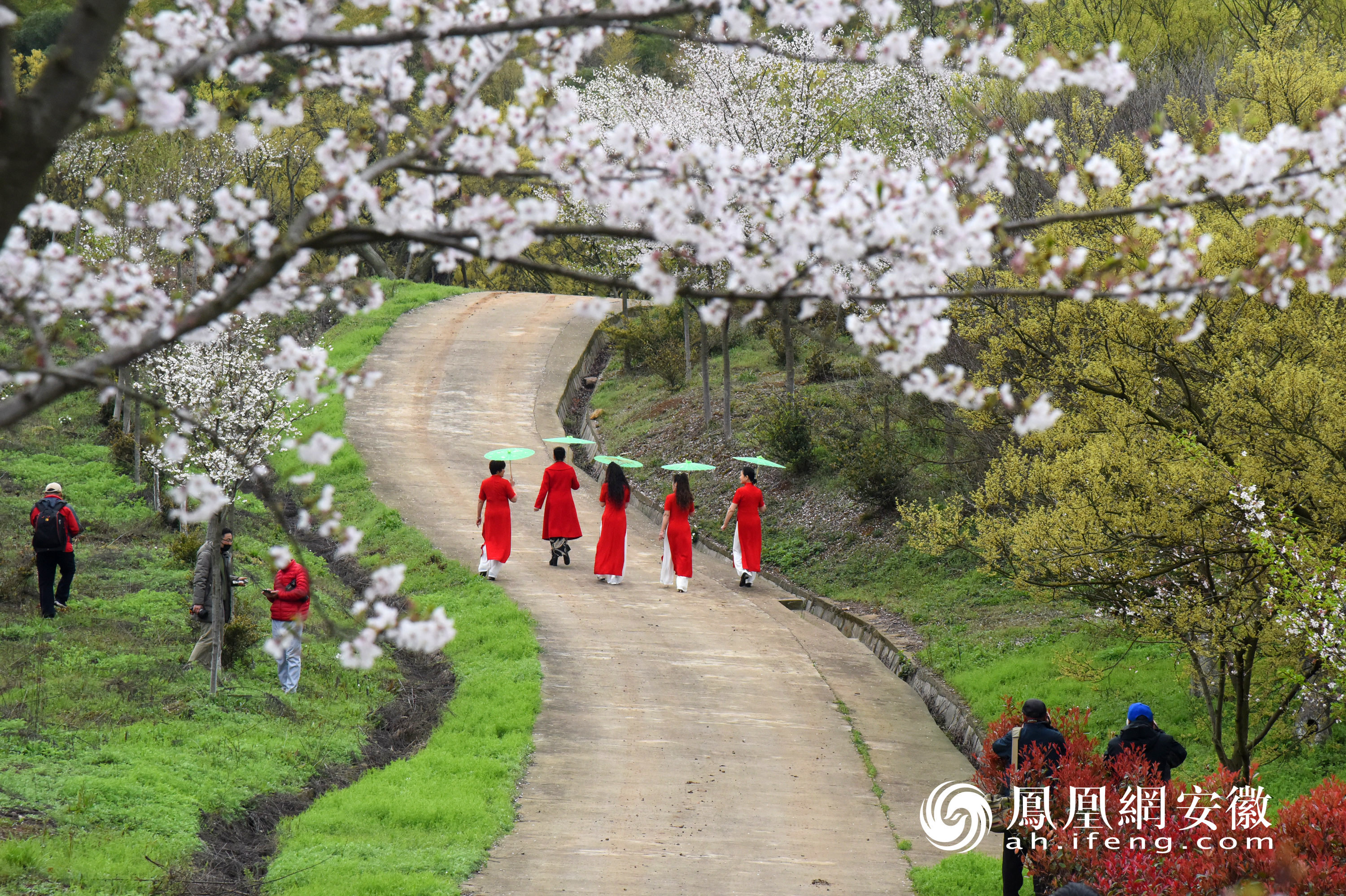 3月25日,马鞍山市博望区丹阳镇百峰村金弹子樱花谷吸引众多摄影爱好者和游客前来“打卡”,漫山遍野盛开的樱花美不胜收,令人陶醉。(凤凰网安徽特约摄影师 胡智慧/摄)