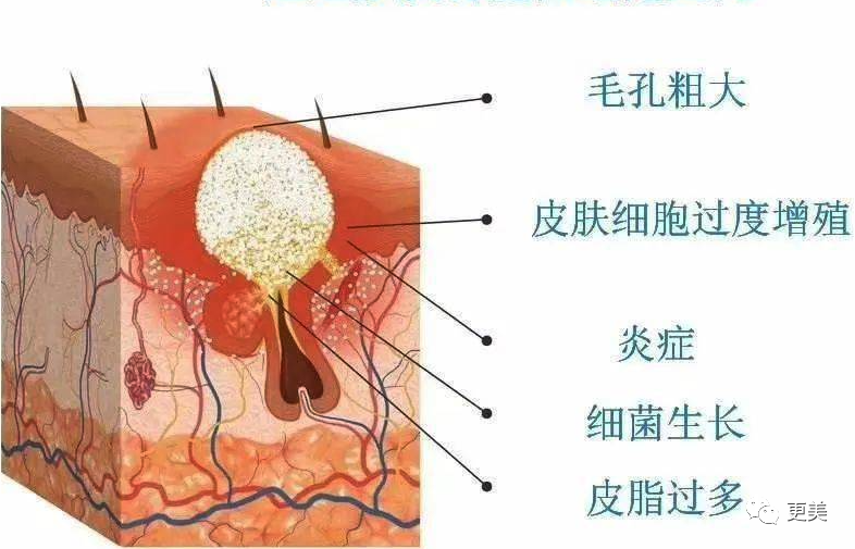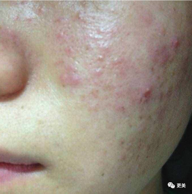 不耐受的物质碰到皮肤后,皮肤产生刺激性反应,扩张的毛细血管更容易激惹到皮下炎症,冒出痘痘、毛孔粗大,常伴有发红、瘙痒红肿症状。