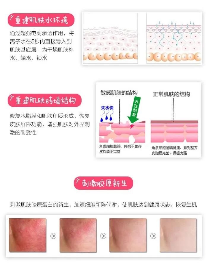 因为它通过超强电离渗透作用,快速将修复精华和玻尿酸导入到皮肤的基底层,从肌底加速细胞新陈代谢,杀菌、消炎,改善缺氧皮肤,提高皮肤免疫功能,重建皮肤的砖墙结构、恢复皮肤屏障功能。