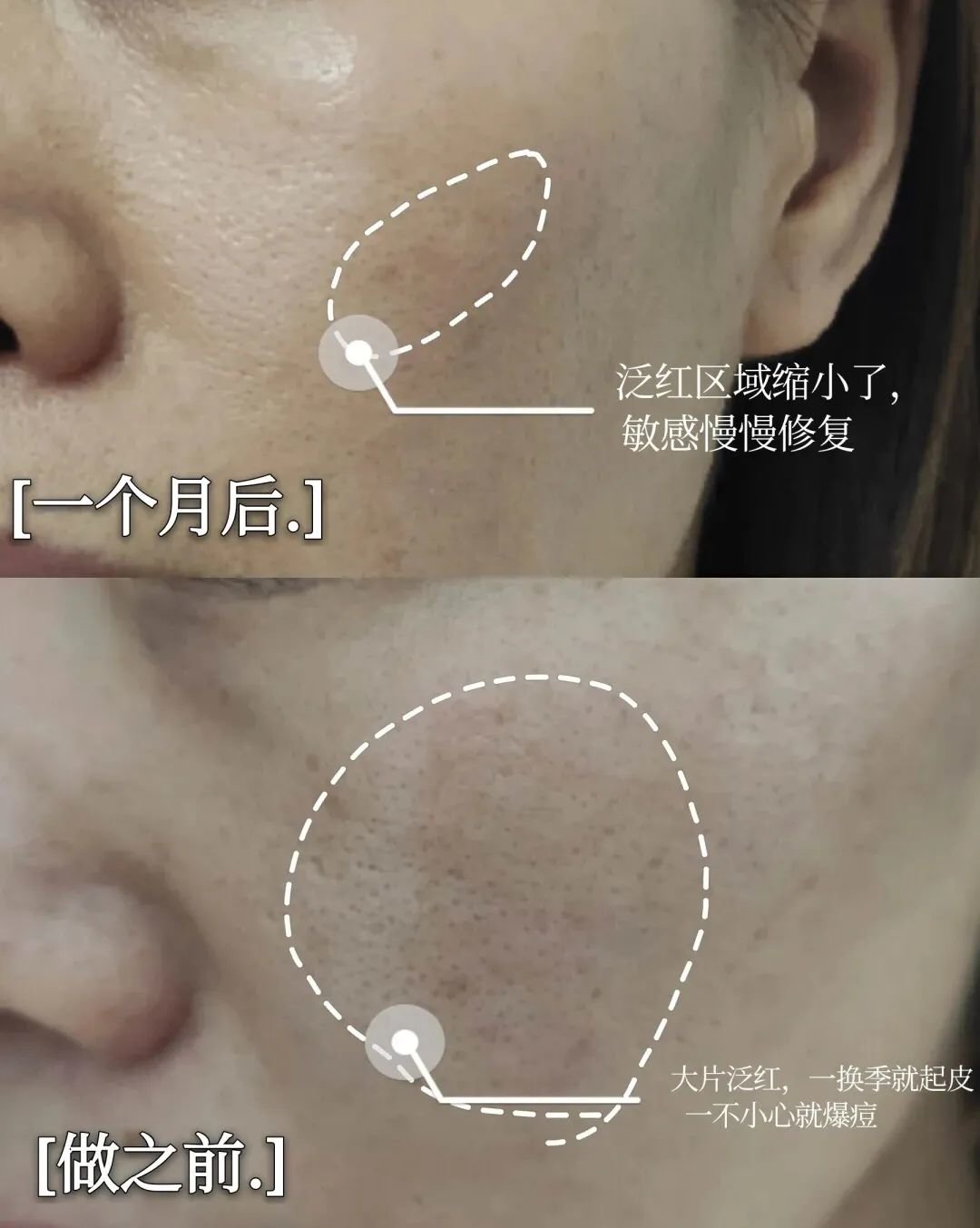 很多姐妹脸干脱皮生屑,是因为皮肤屏障受损不能正常锁住补充进来的水分。